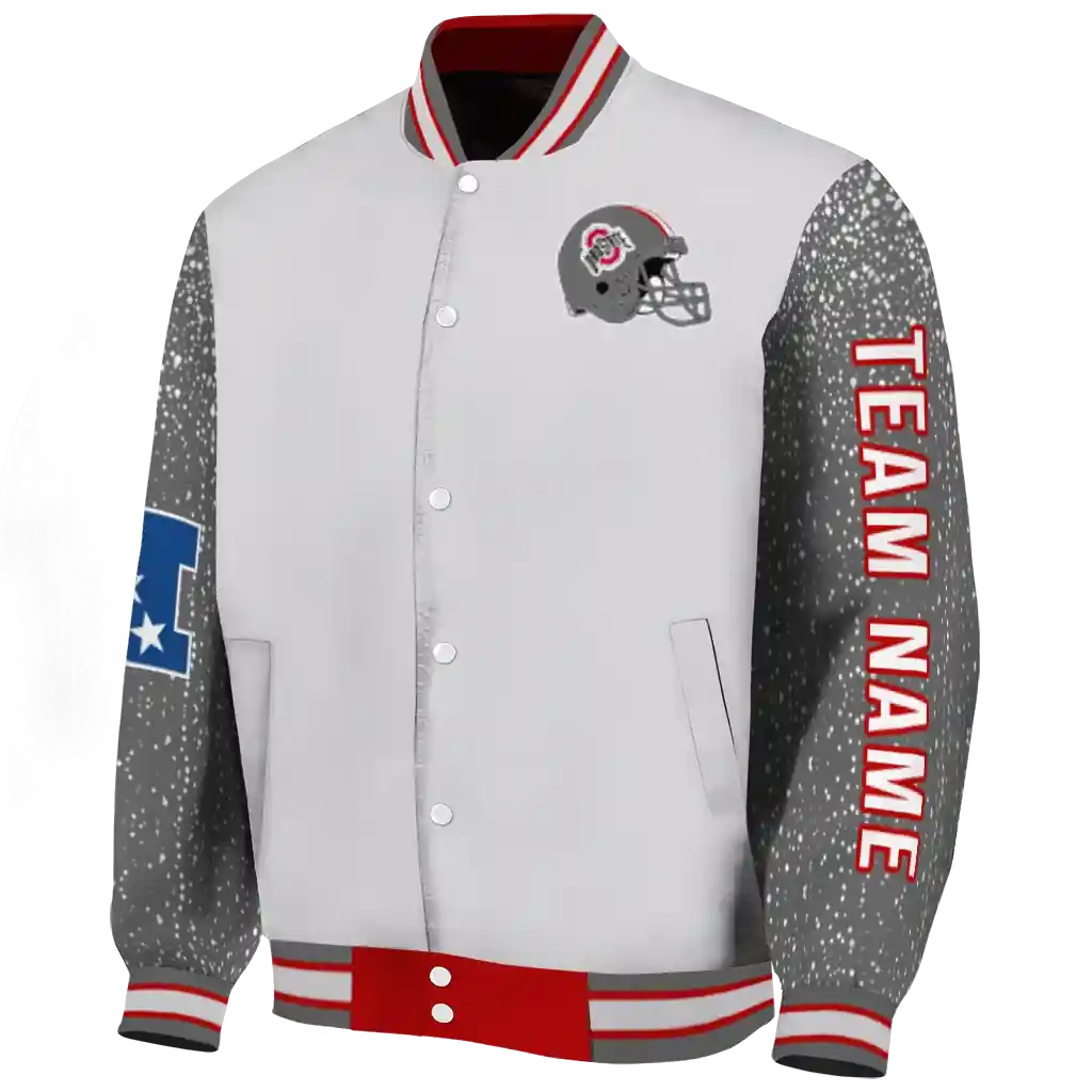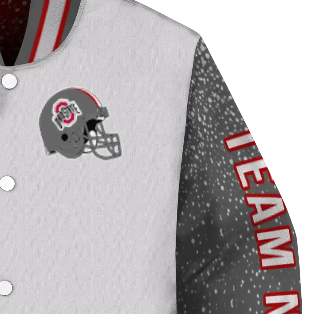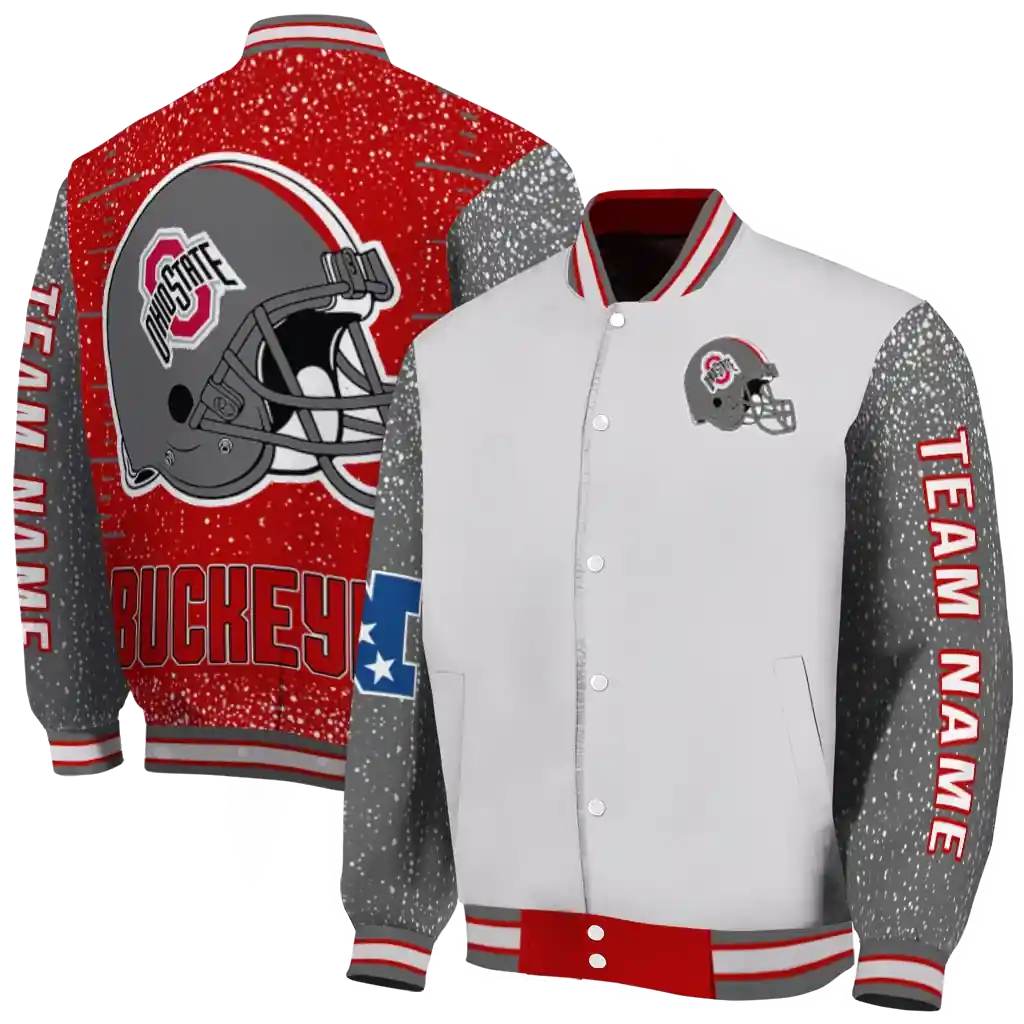Customized Ohio State Buckeyes Speckled Arms Scarlet Gray Varsity Jacket