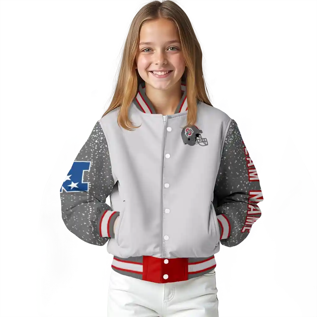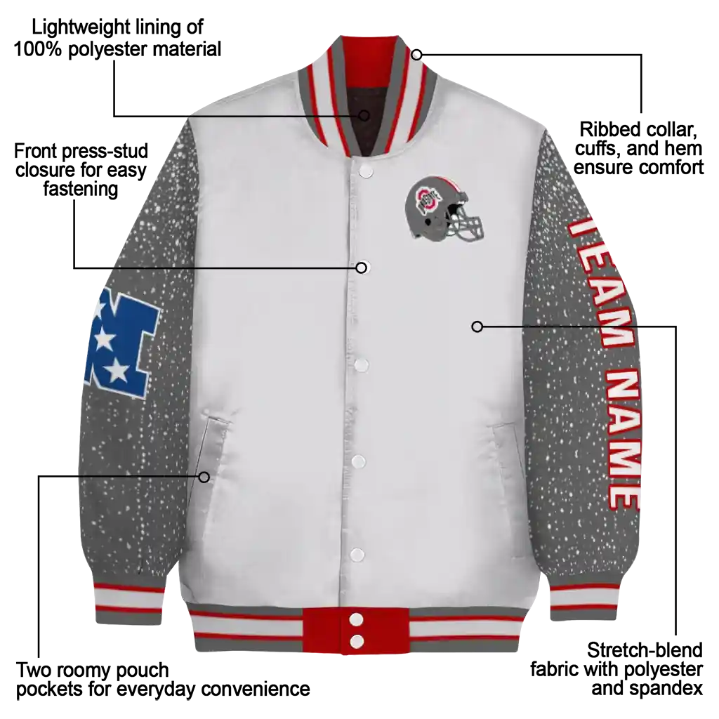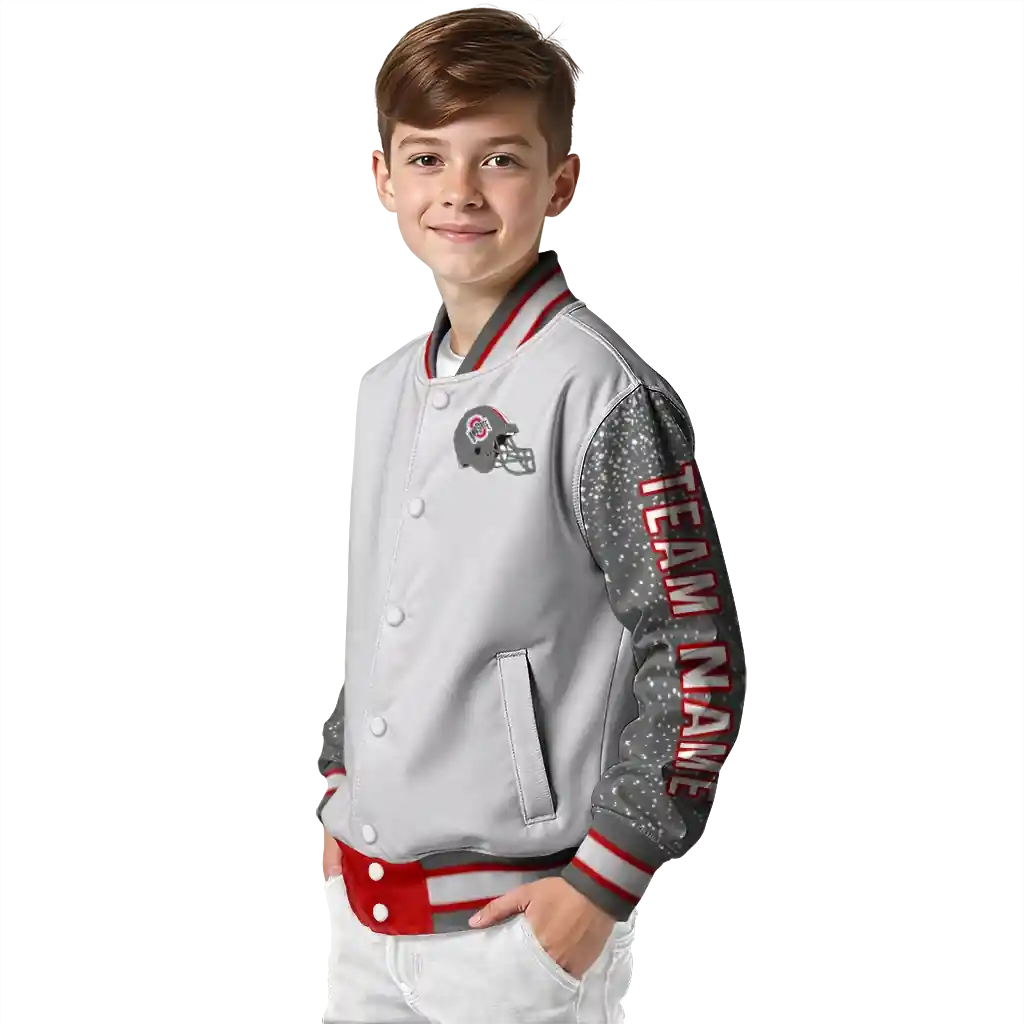 Customized Ohio State Buckeyes Speckled Arms Scarlet Gray Varsity Jacket