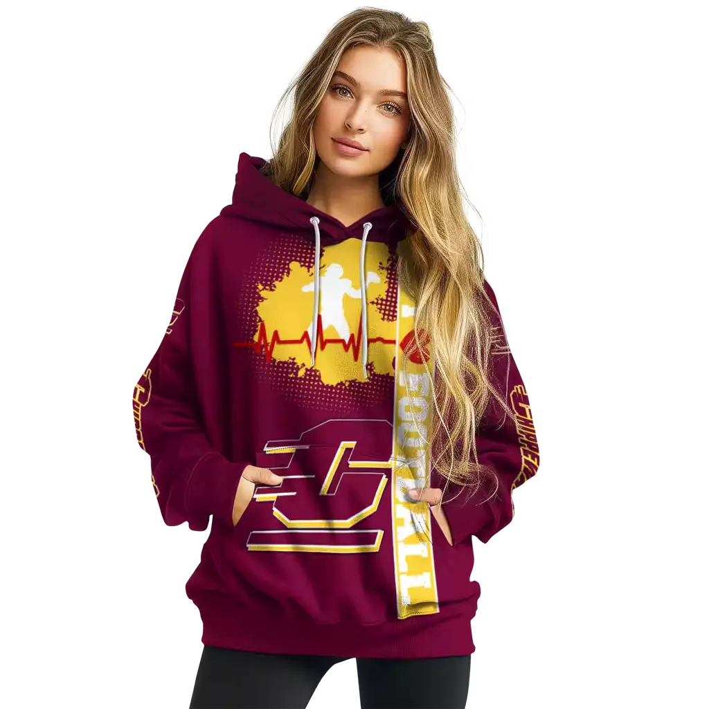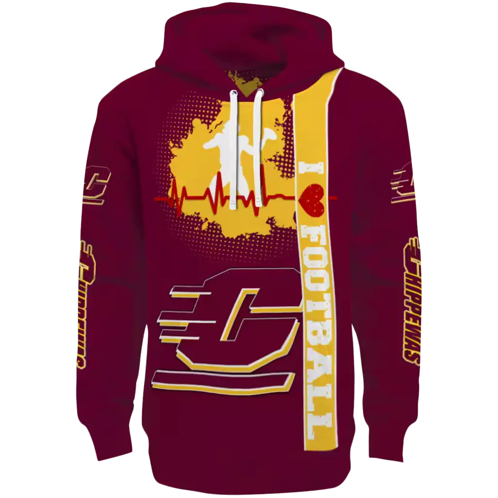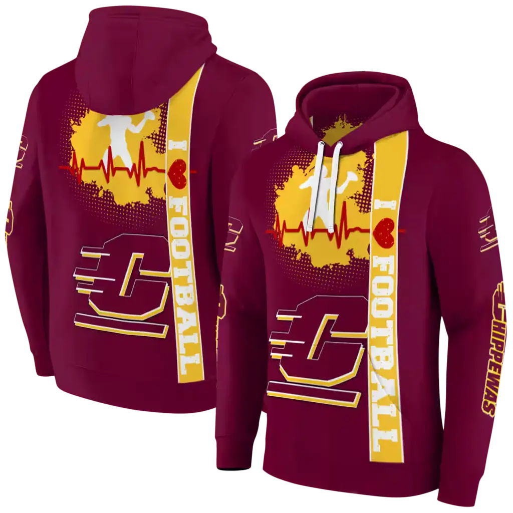 Central Michigan Chippewas Maroon Football Heartbeat Hoodie