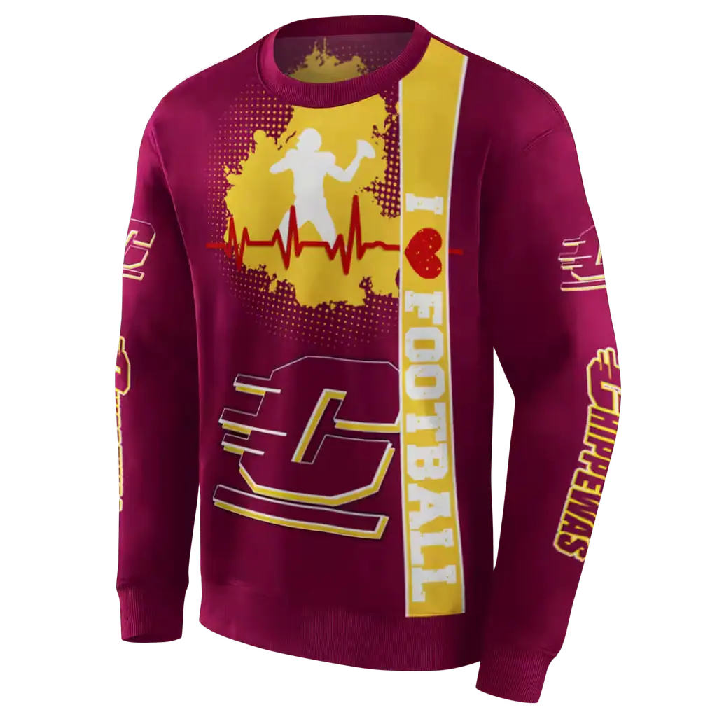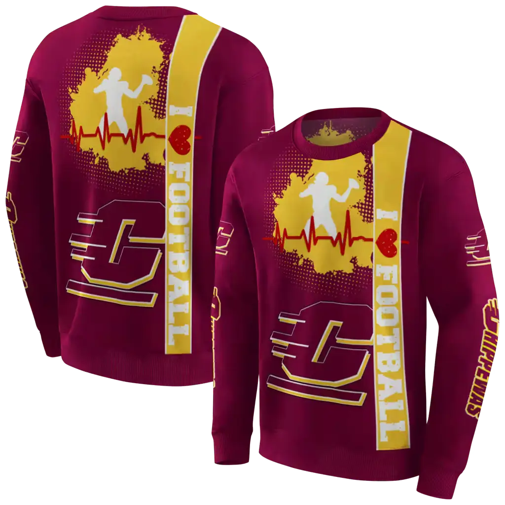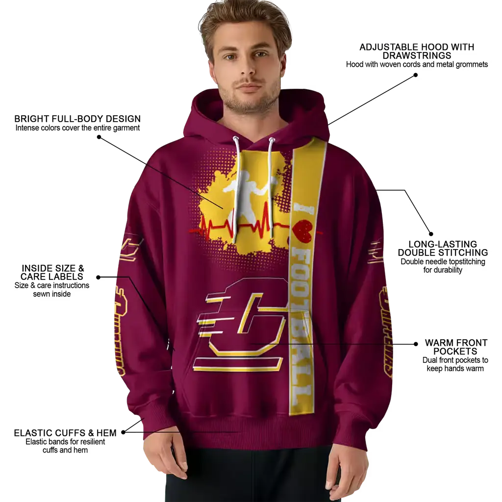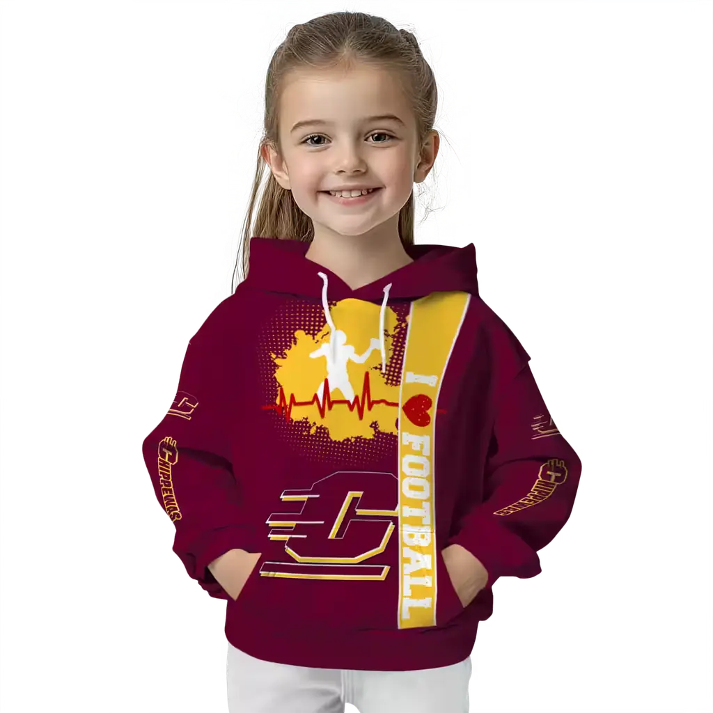 Central Michigan Chippewas Maroon Football Heartbeat Hoodie
