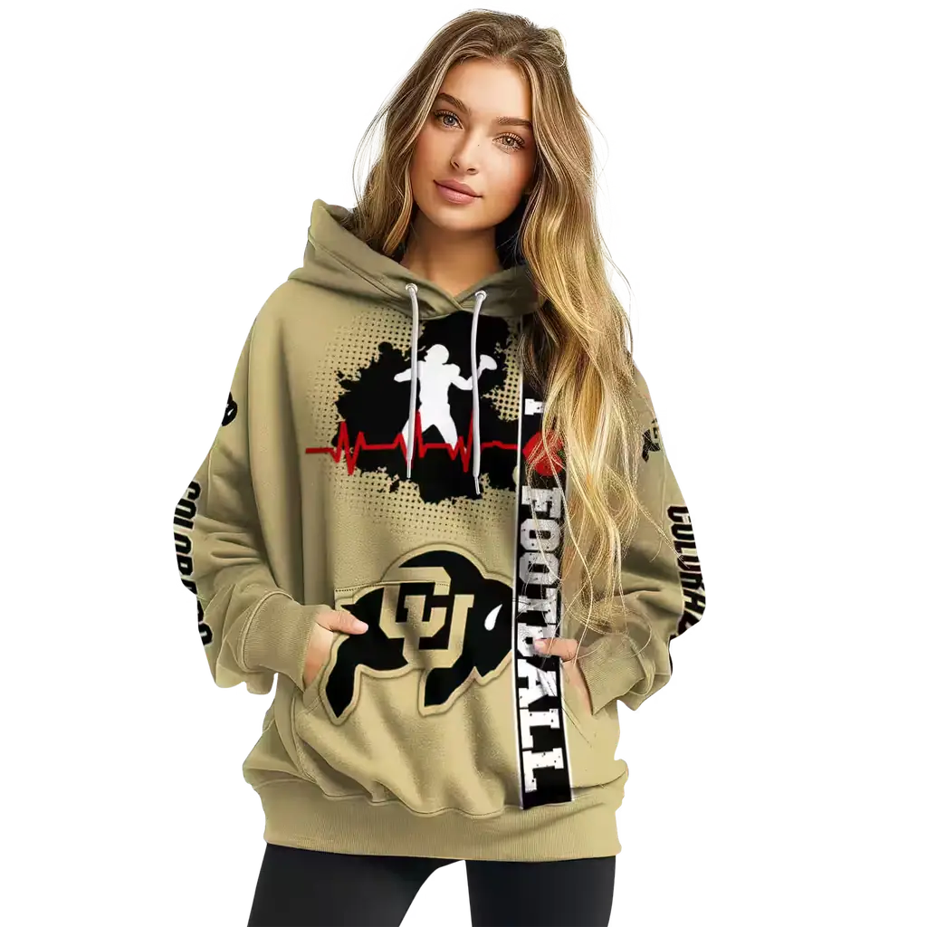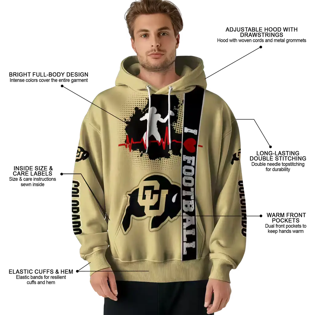 Colorado Buffaloes Gold Hoodie – Football Heartbeat Design