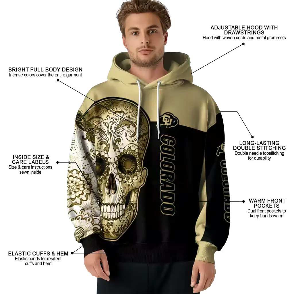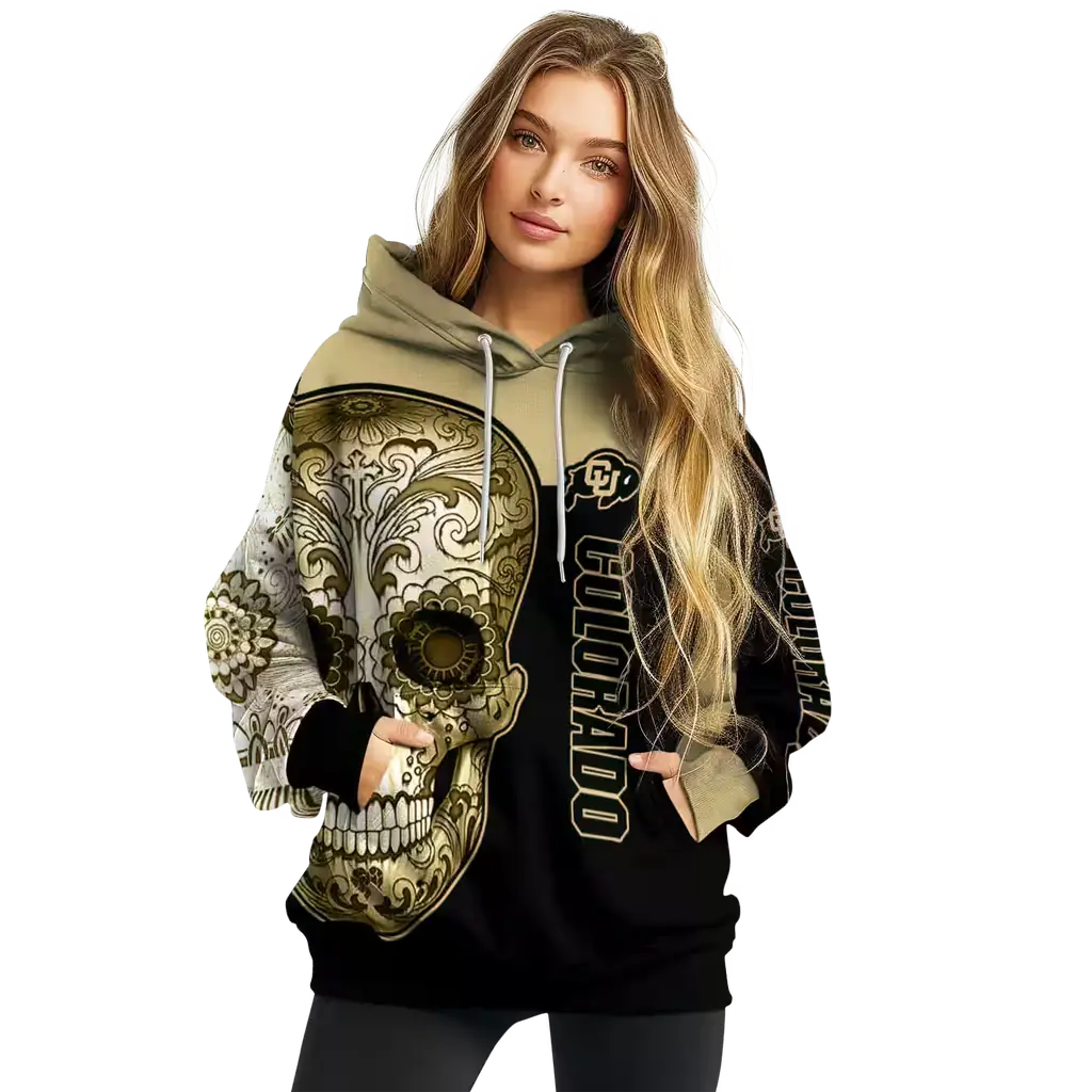 Colorado Buffaloes Sugar Skull Gold Black Hoodie – Stylish Fan Gear