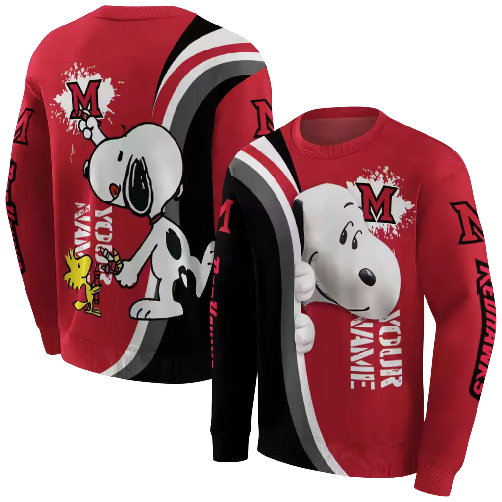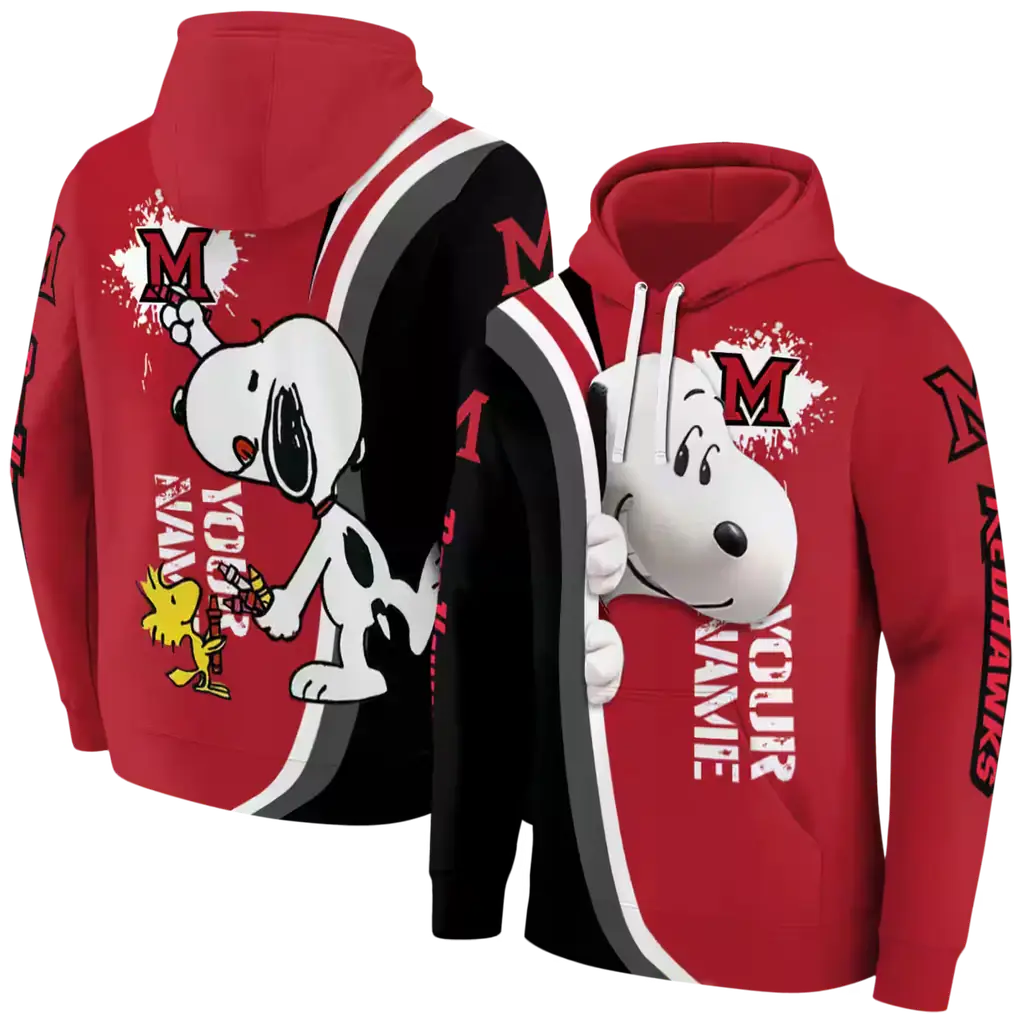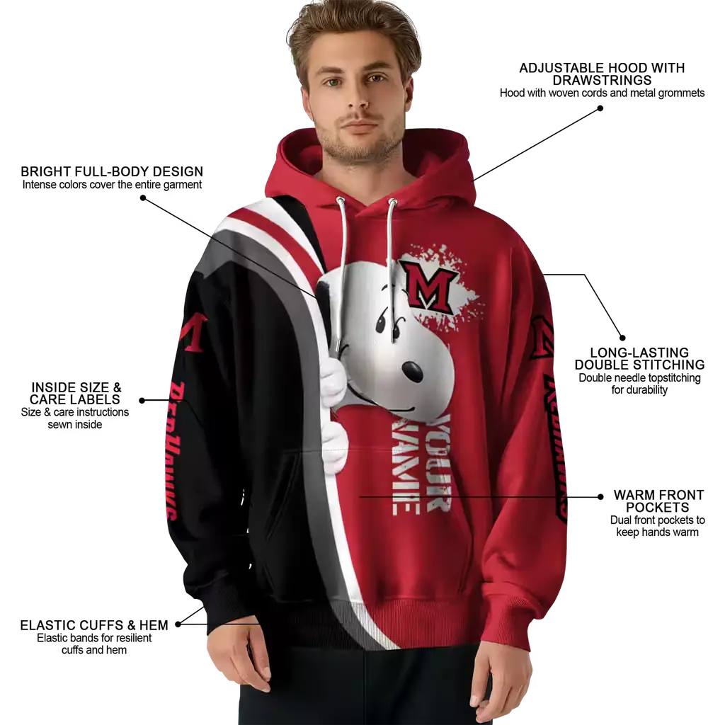 Custom Miami RedHawks Snoopy Red Hoodie – Peeking Design