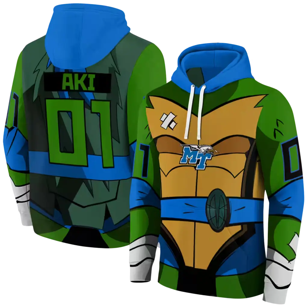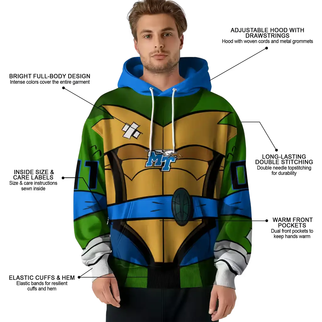 personalized middle tennessee blue raiders superhero armor blue green hoodie best selling