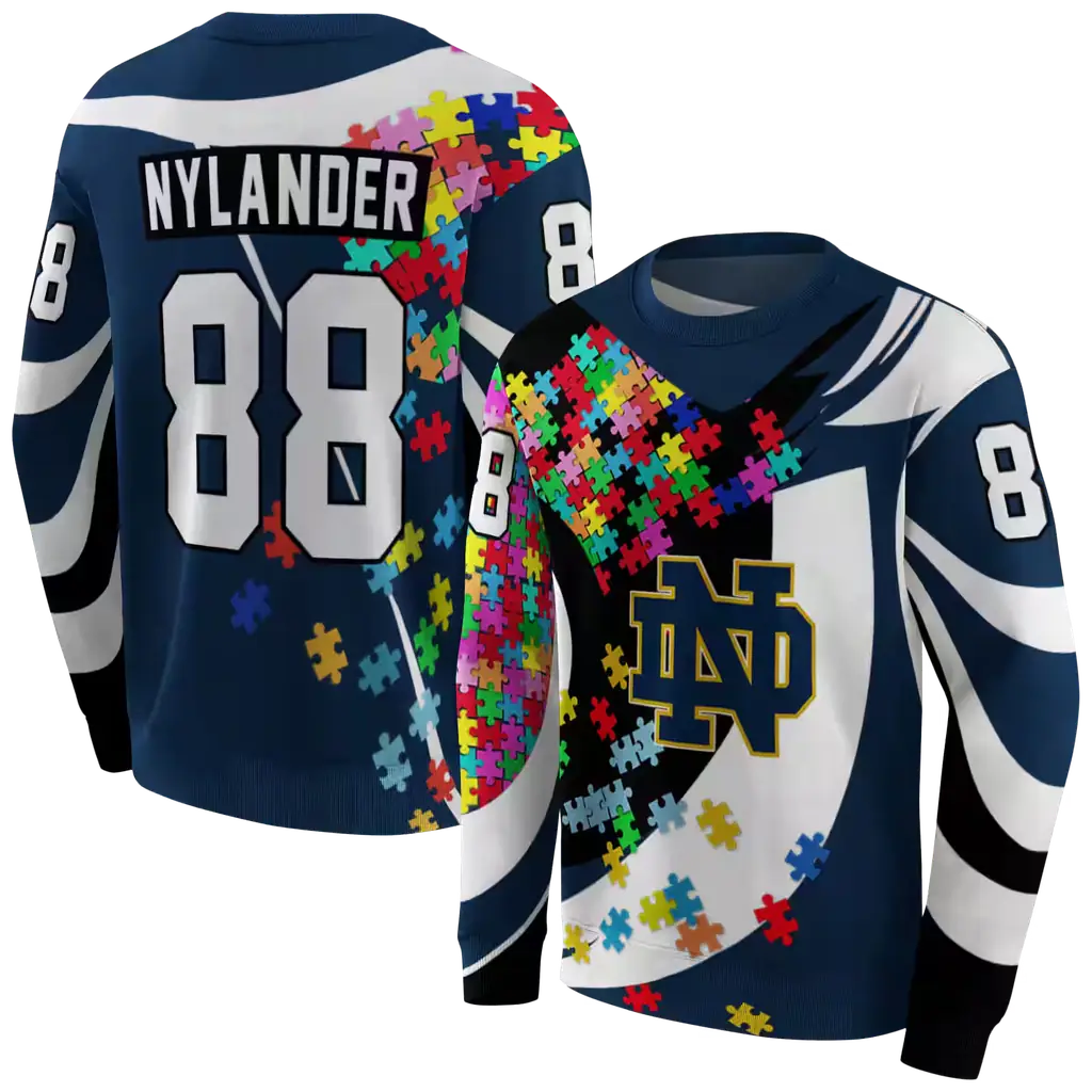 personalized notre dame fighting irish puzzle pieces navy hoodie best selling