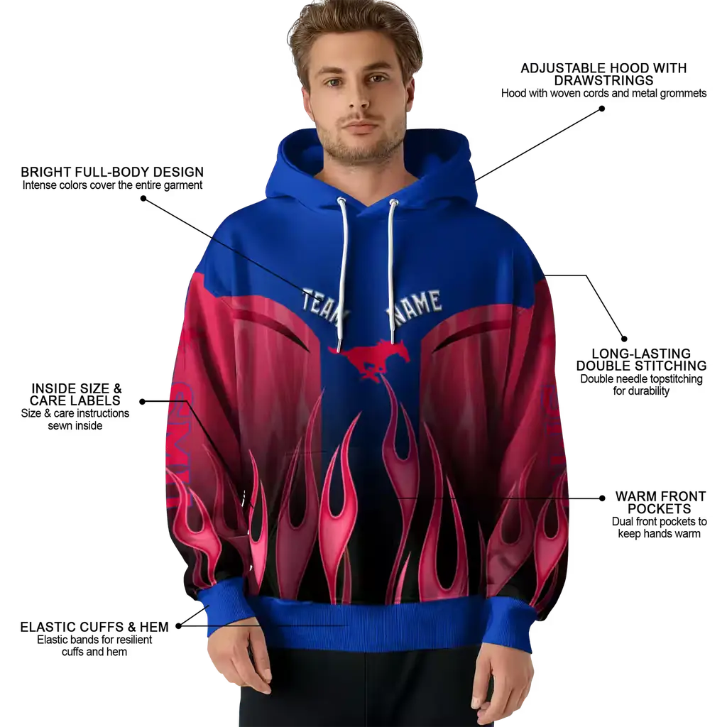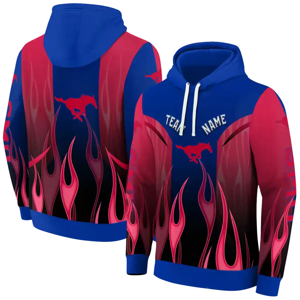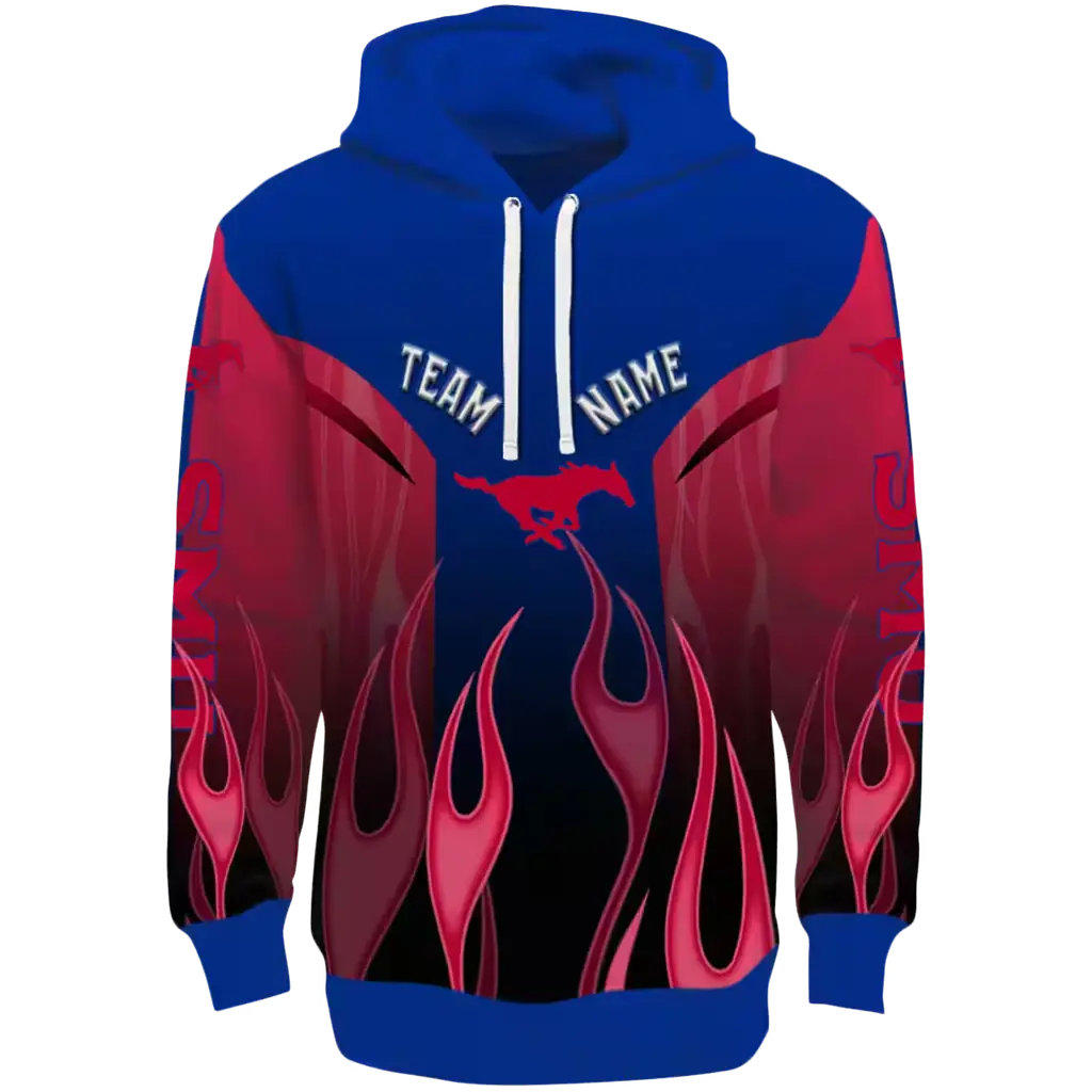 Custom SMU Mustangs Blue Hoodie with Flame Design – Stylish Fan Gear