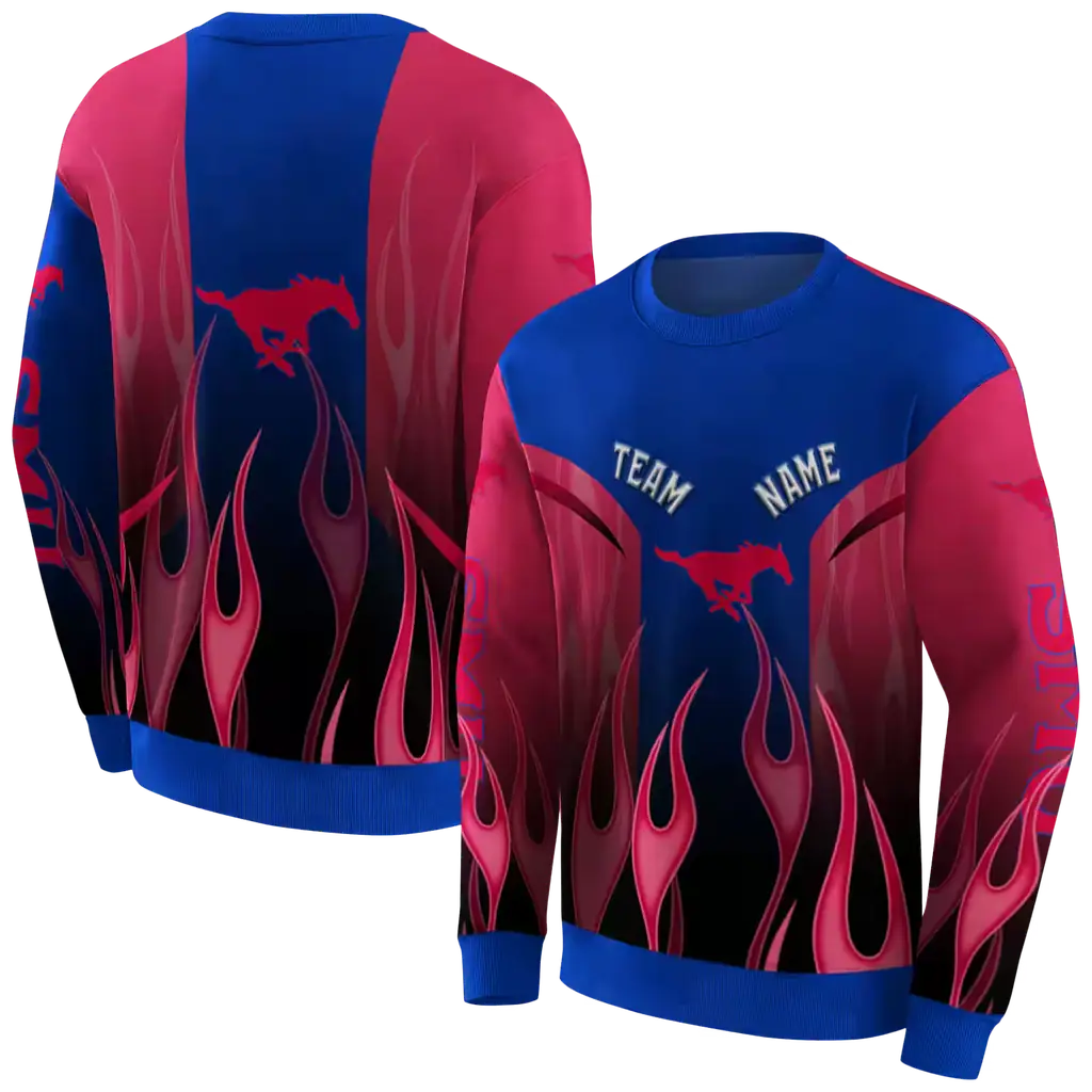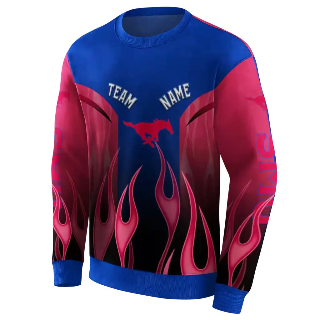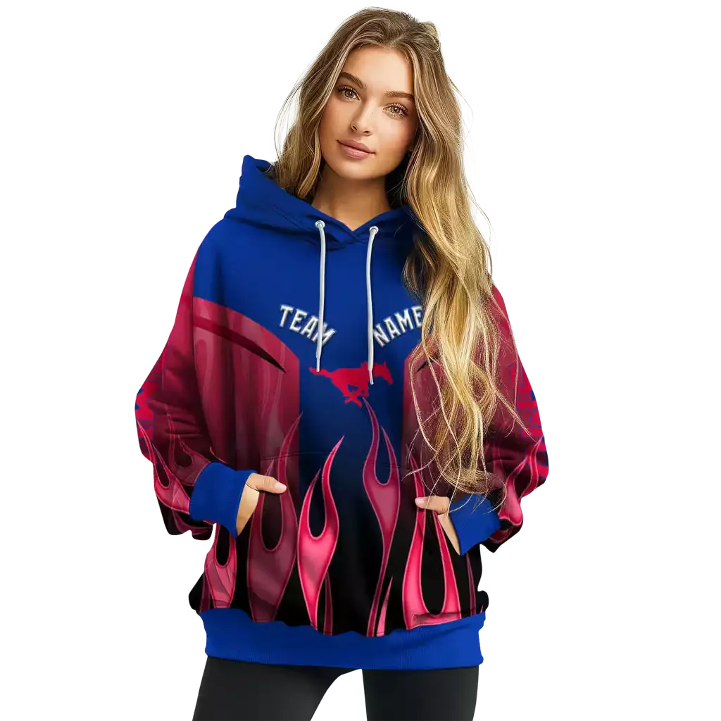 Custom SMU Mustangs Blue Hoodie with Flame Design – Stylish Fan Gear