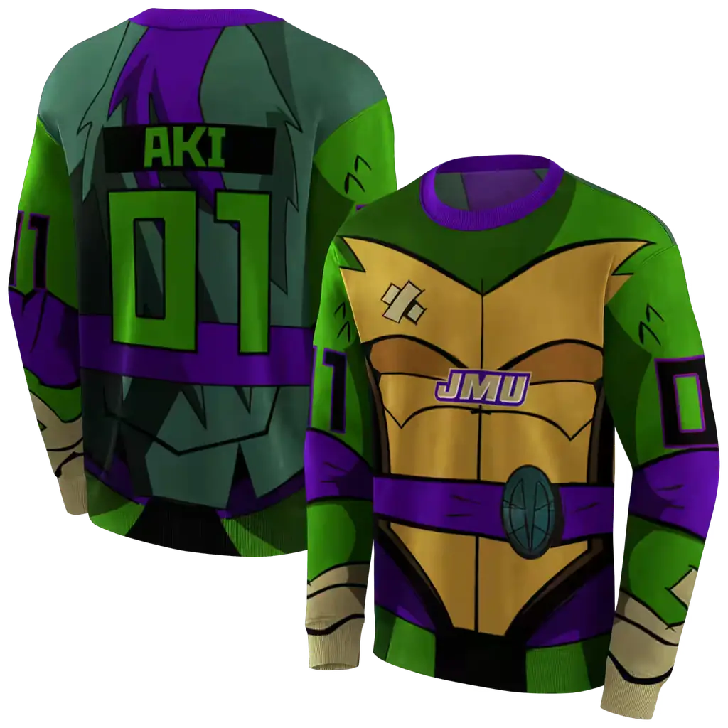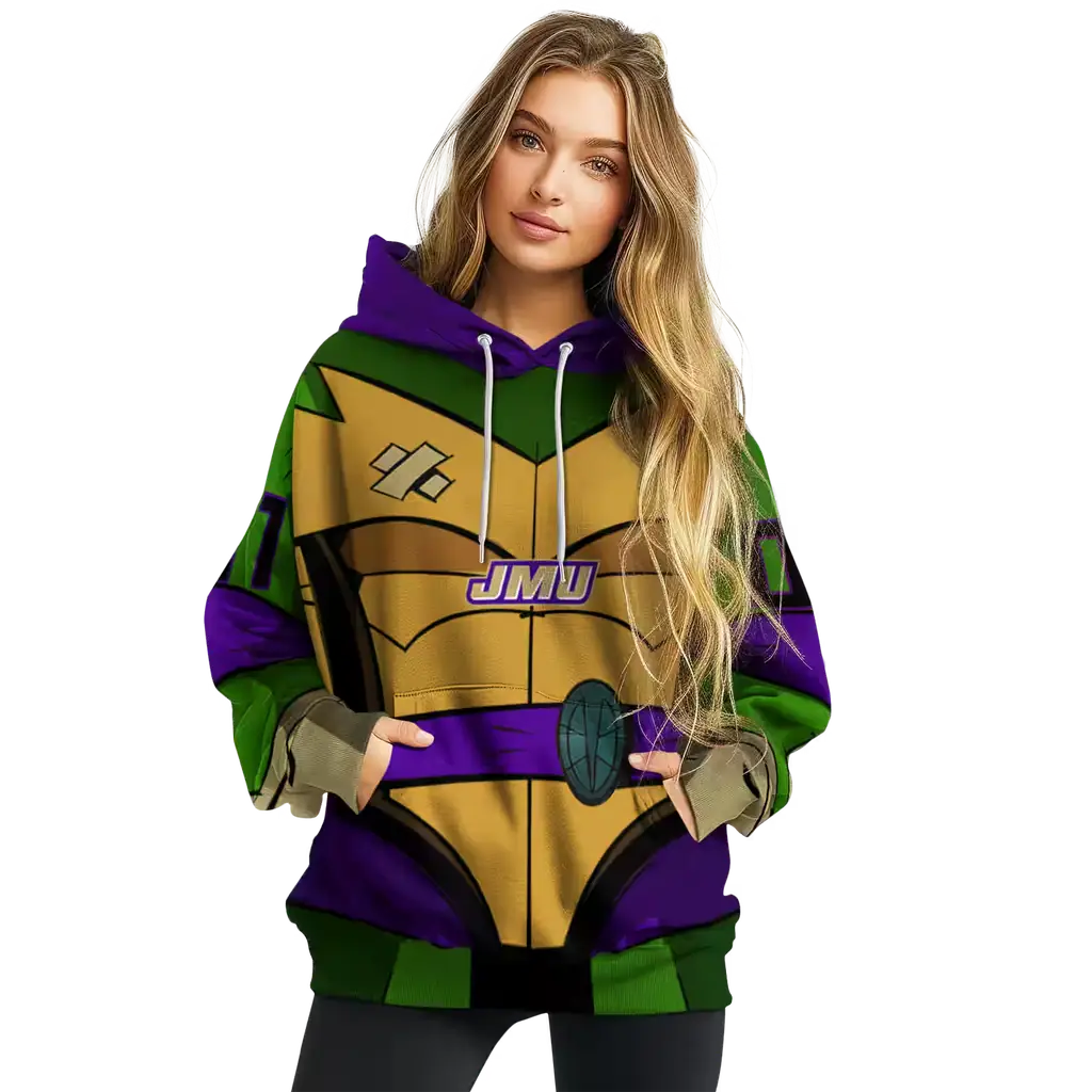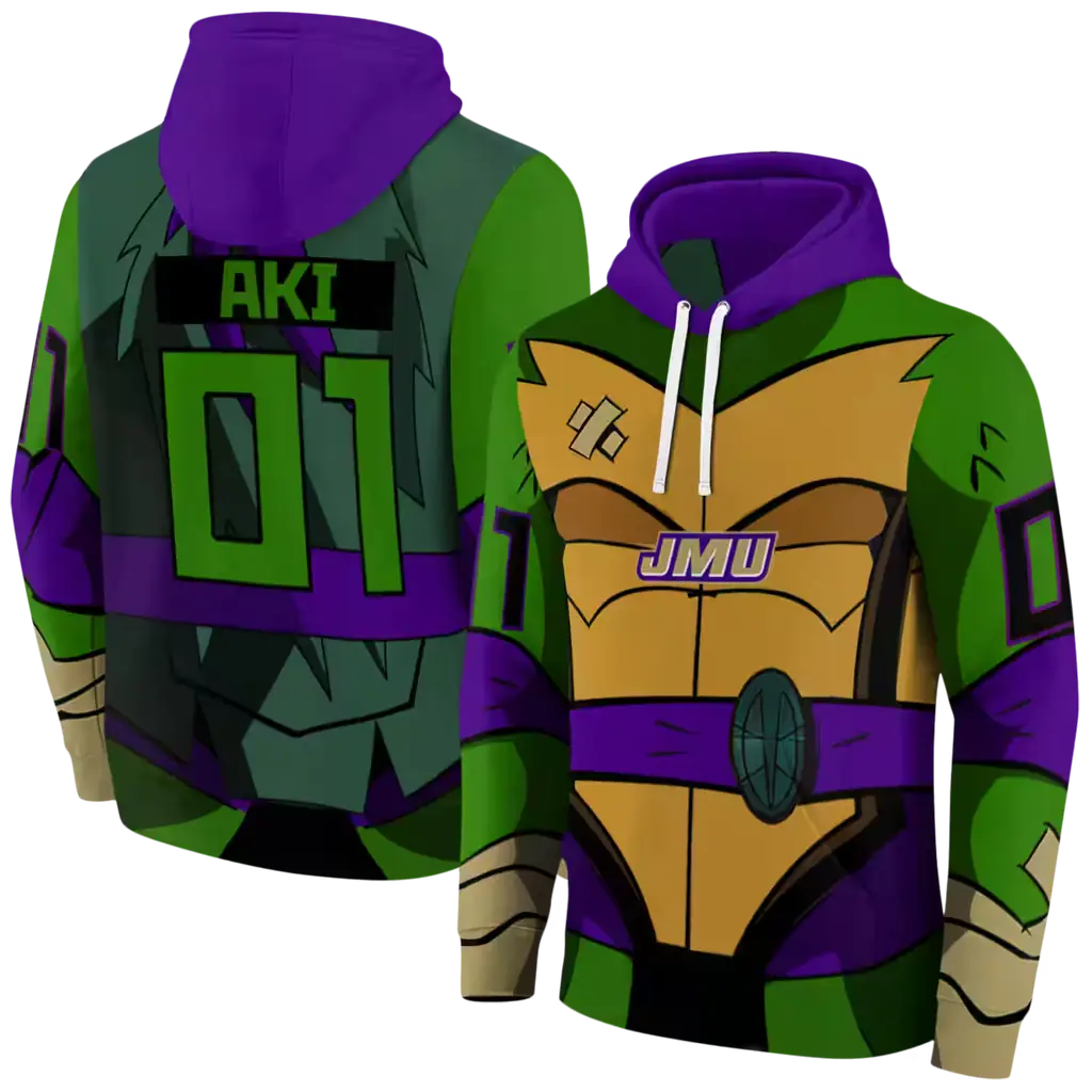 custom james madison dukes superhero armor purple green hoodie best selling