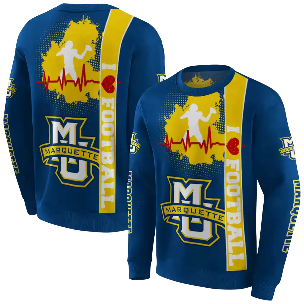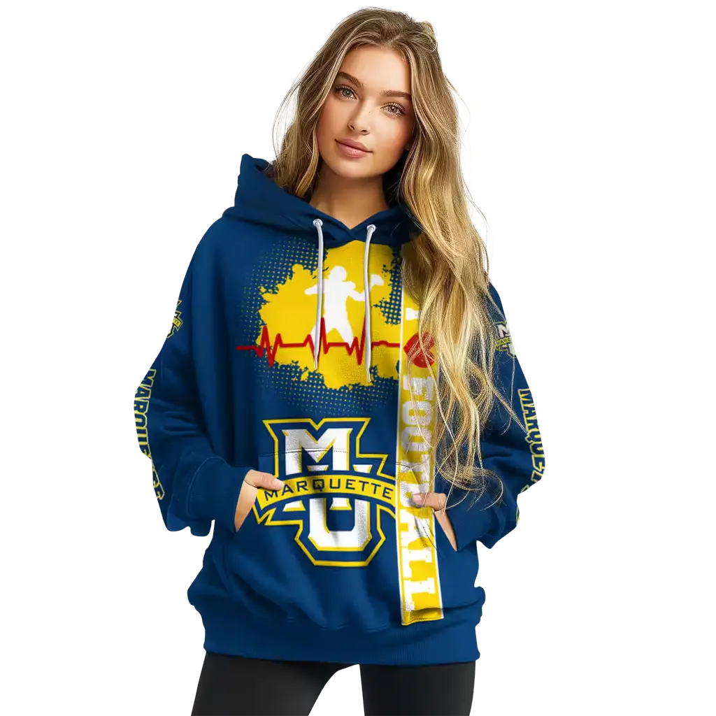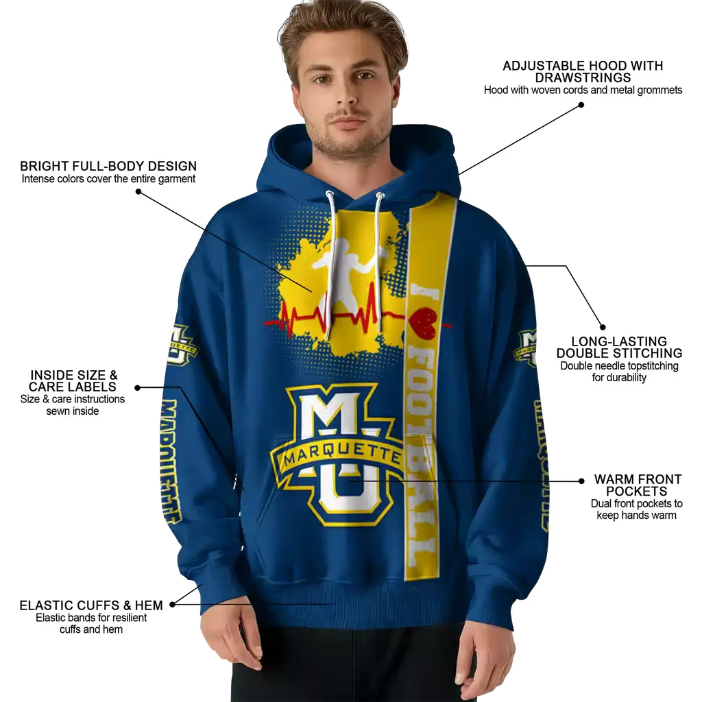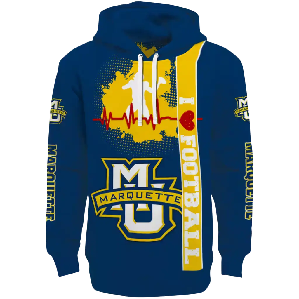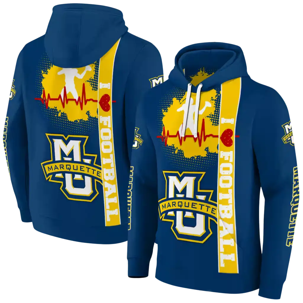 Marquette Golden Eagles Football Blue Heartbeat Hoodie