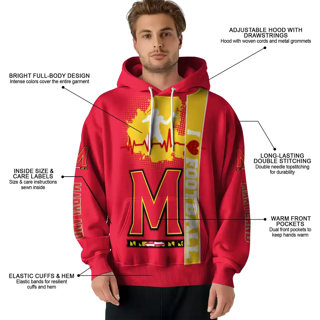 Maryland Terrapins Red Football Heartbeat Hoodie – Cozy Fan Gear