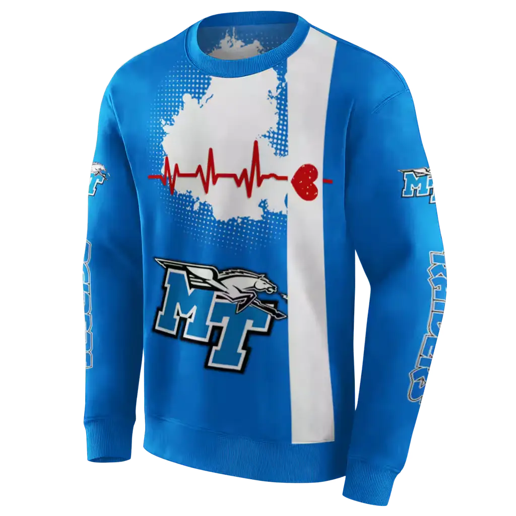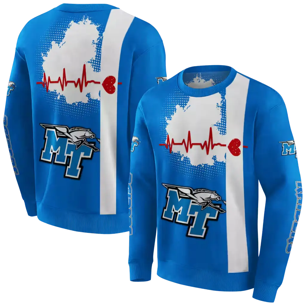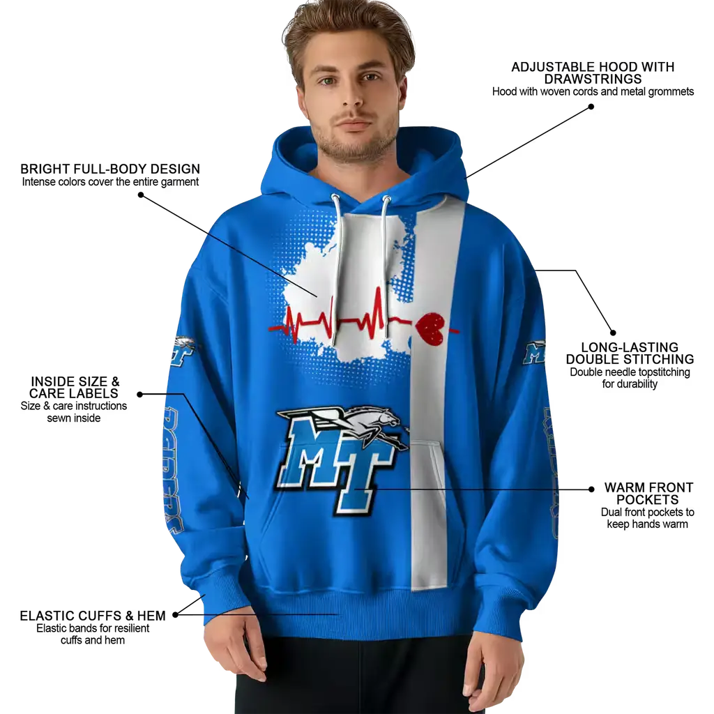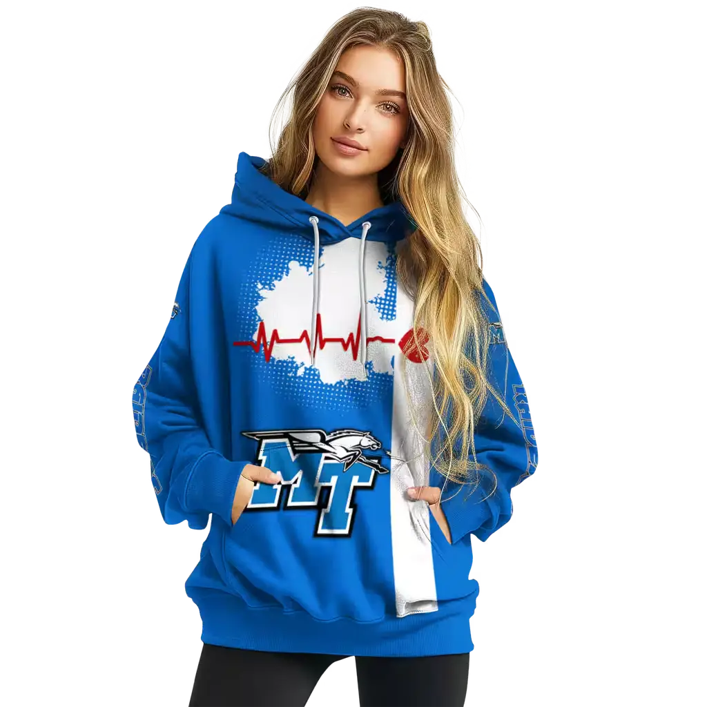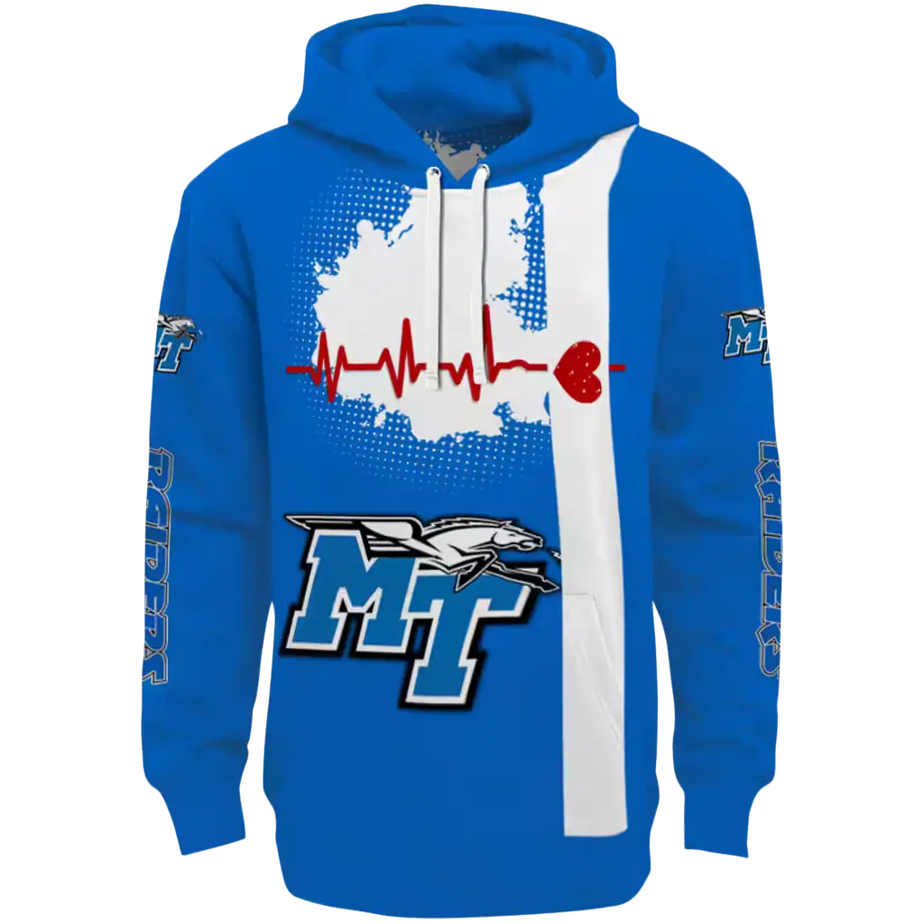 middle tennessee blue raiders football heartbeat blue hoodie best selling