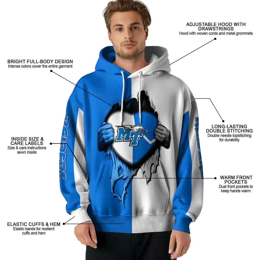 Middle Tennessee Blue Raiders Heartbeat Hoodie – Blue Graphic Sweatshirt