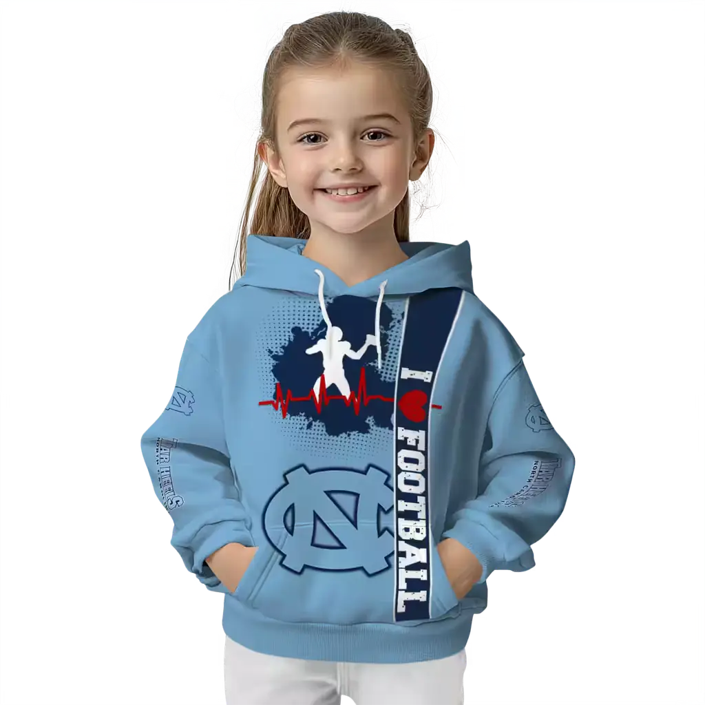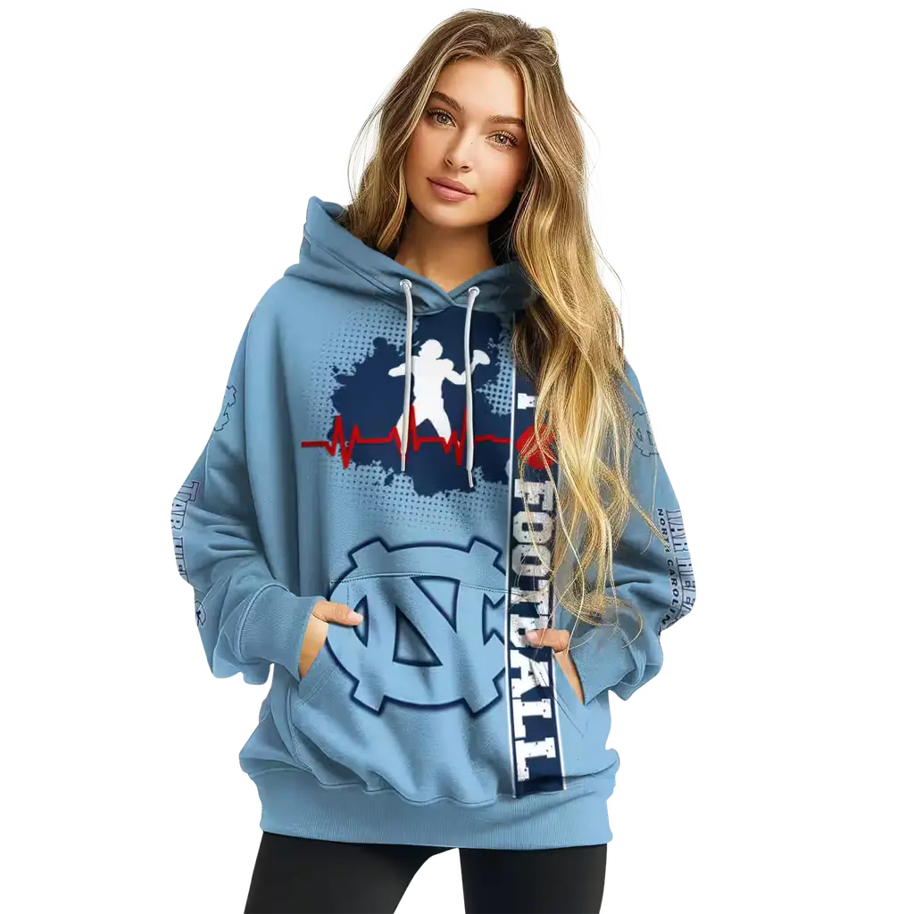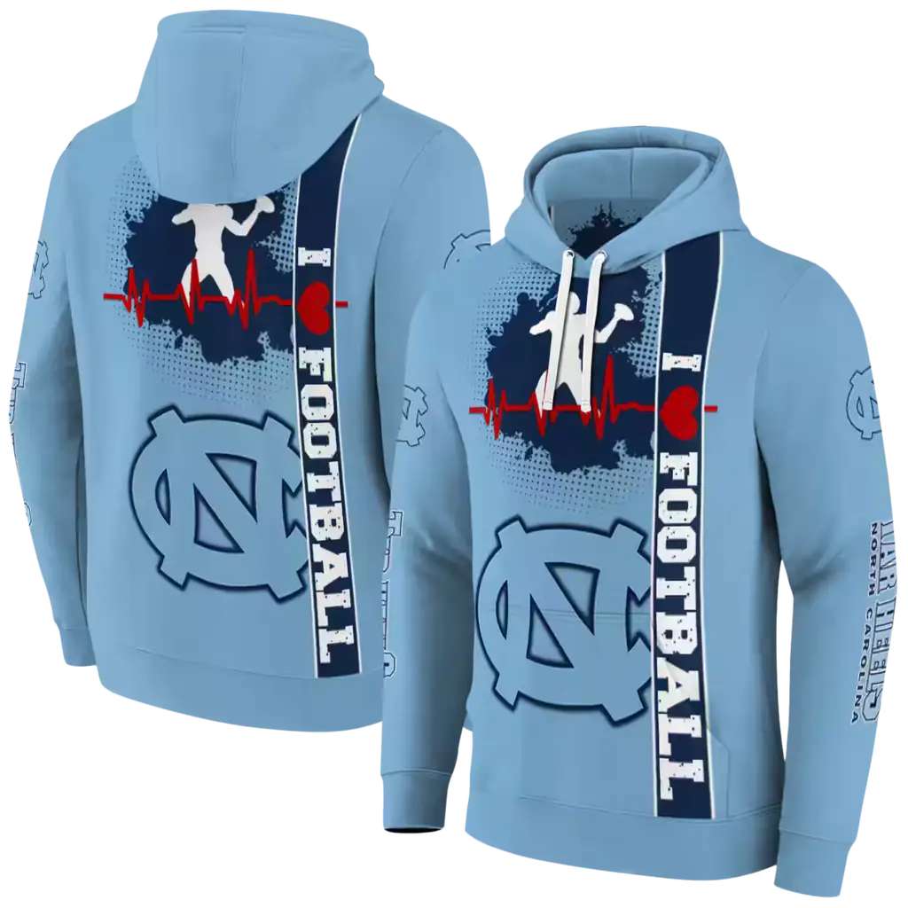 North Carolina Tar Heels Football Light Blue Heartbeat Hoodie