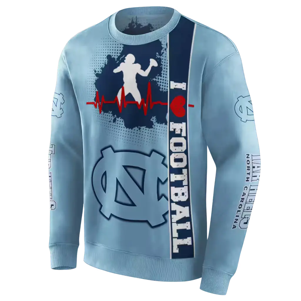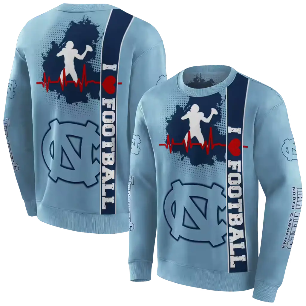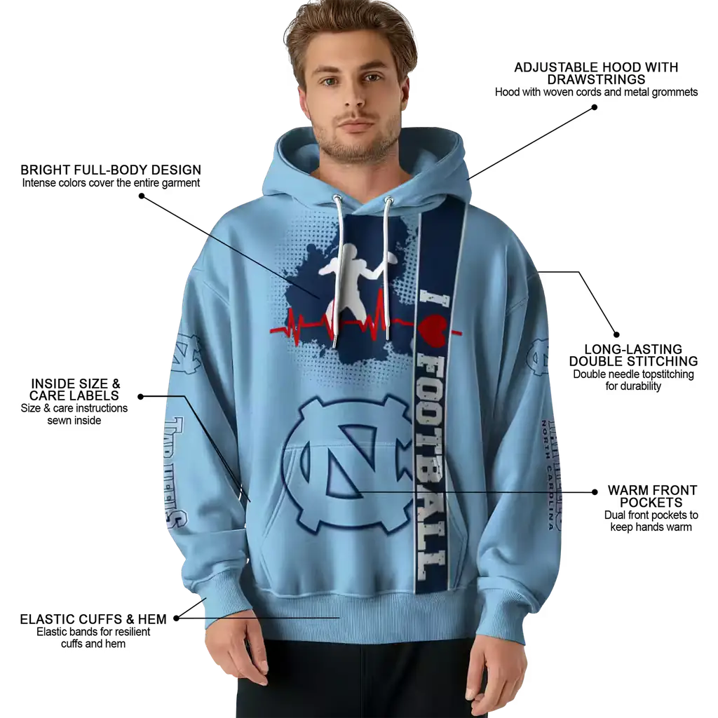 North Carolina Tar Heels Football Light Blue Heartbeat Hoodie