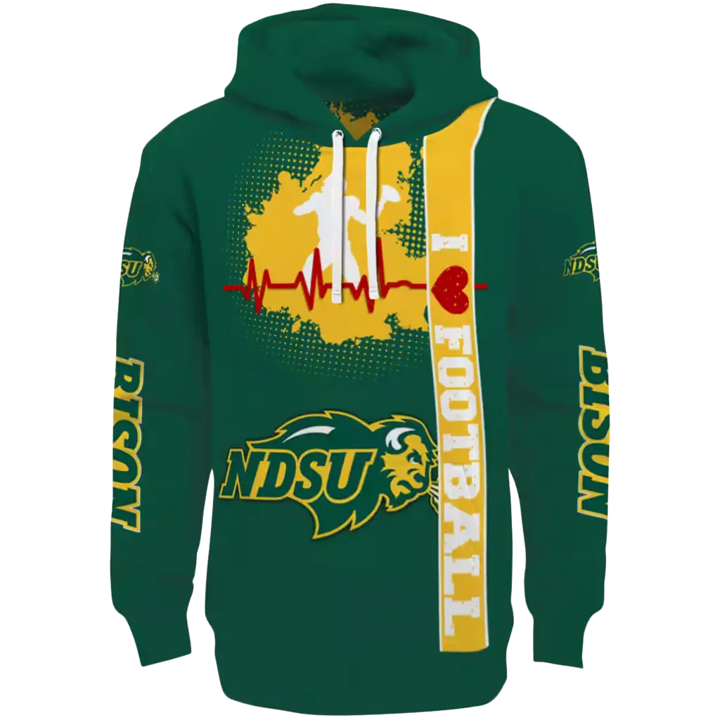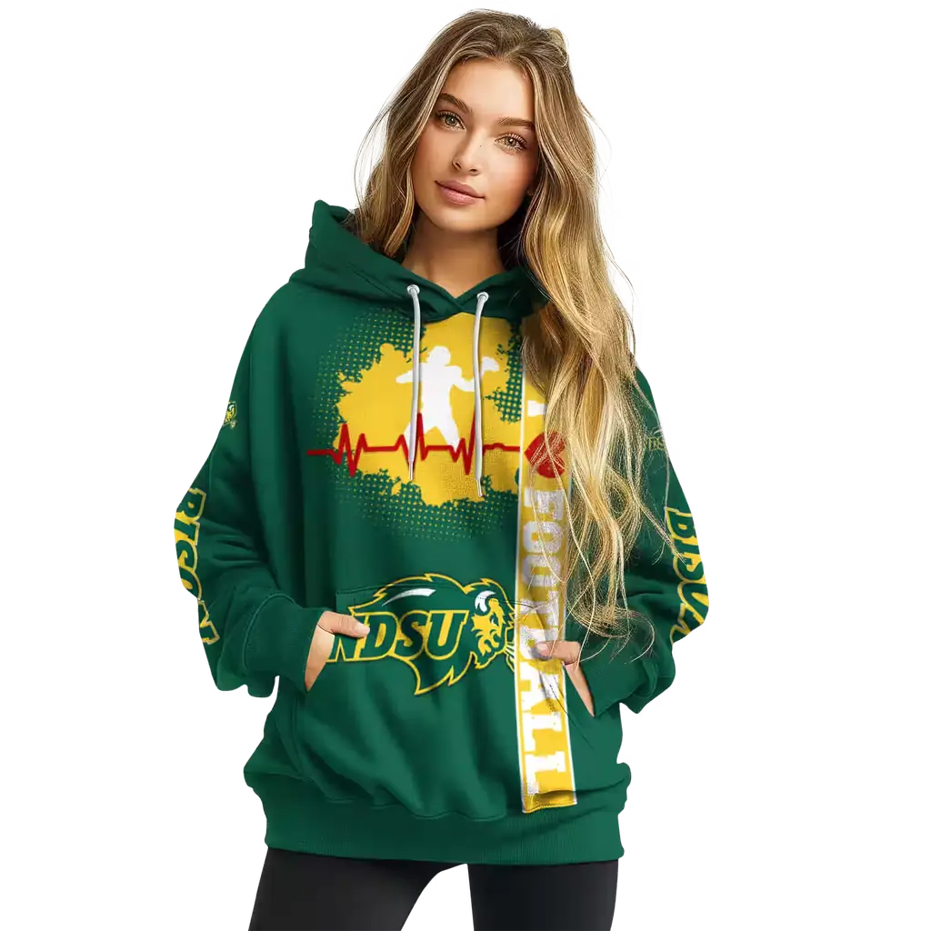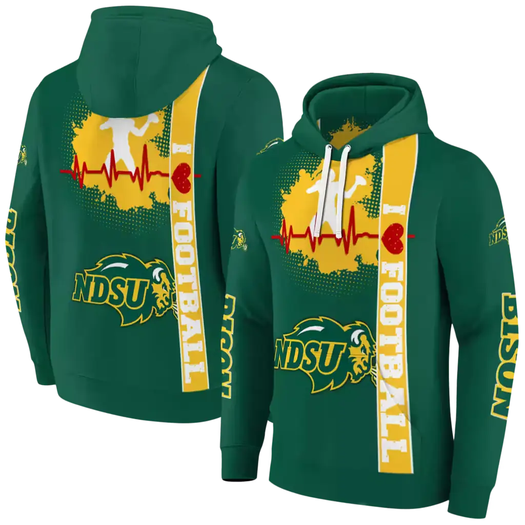North Dakota State Bison Green Football Heartbeat Hoodie