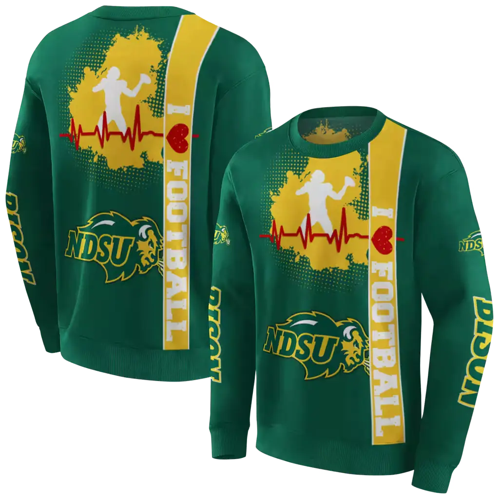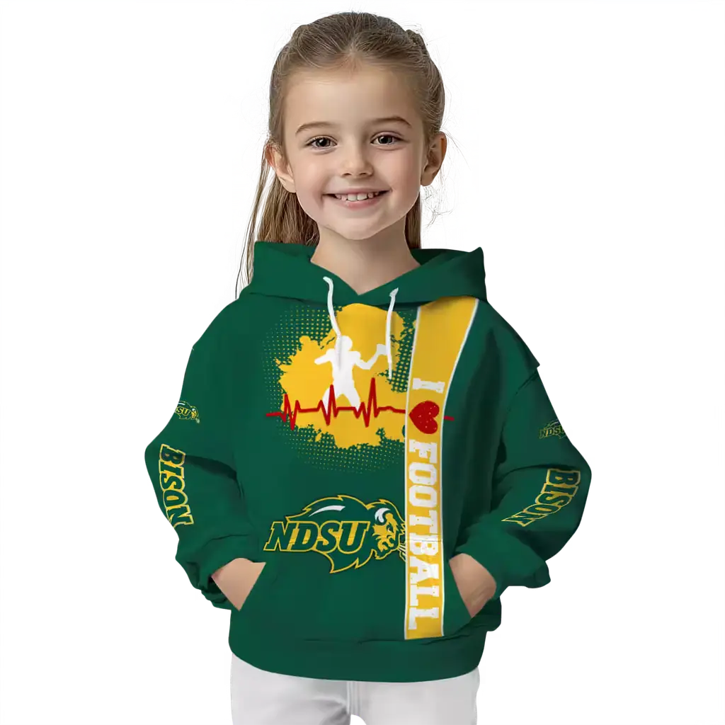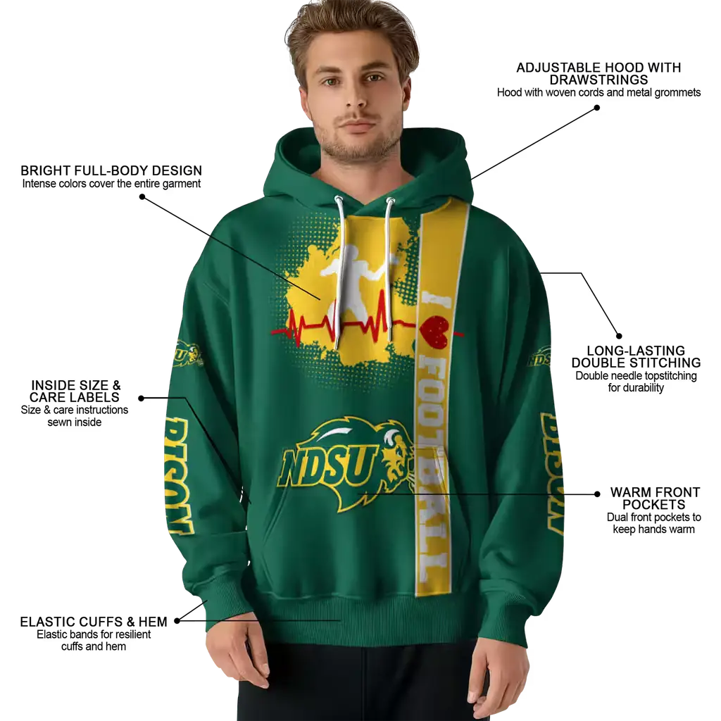 North Dakota State Bison Green Football Heartbeat Hoodie