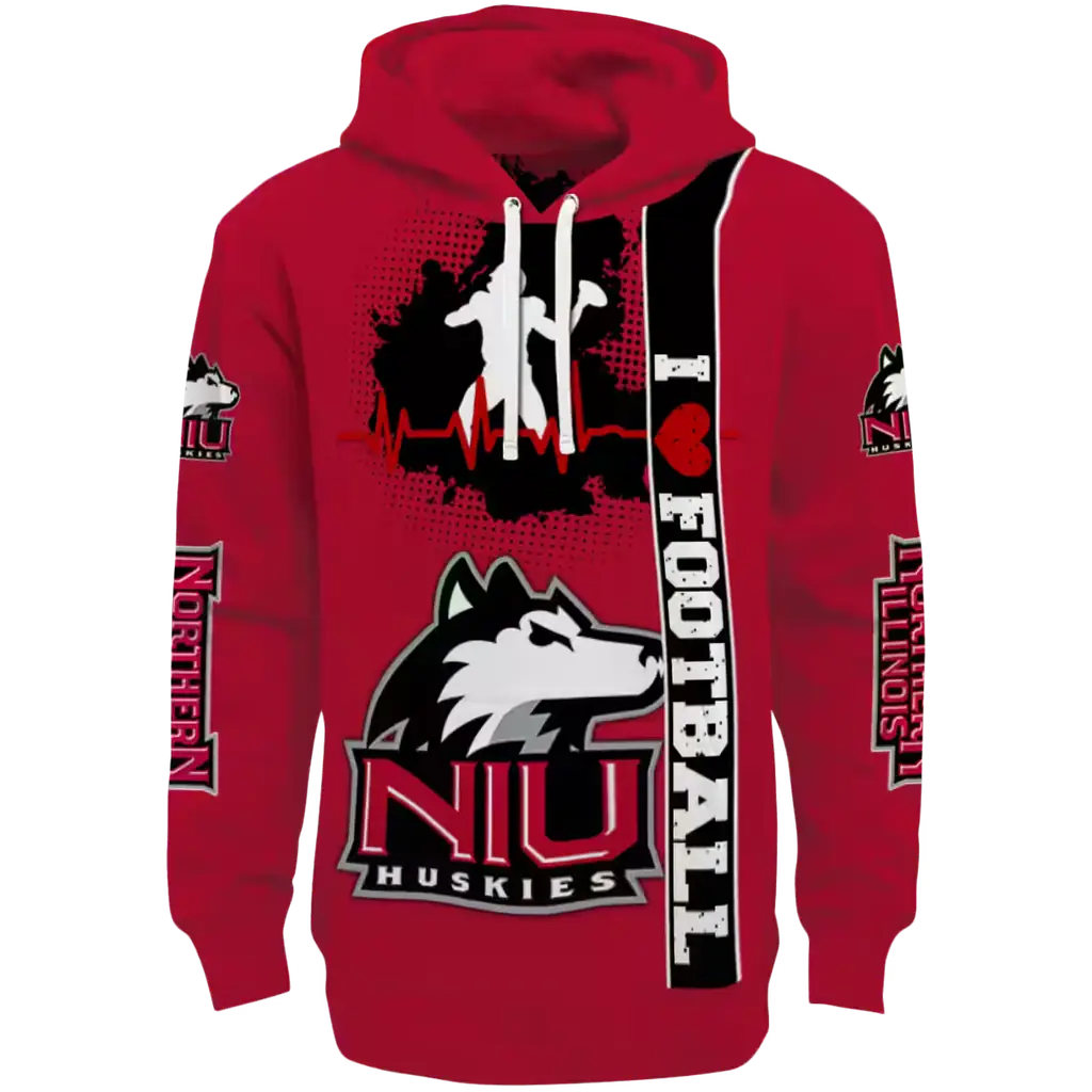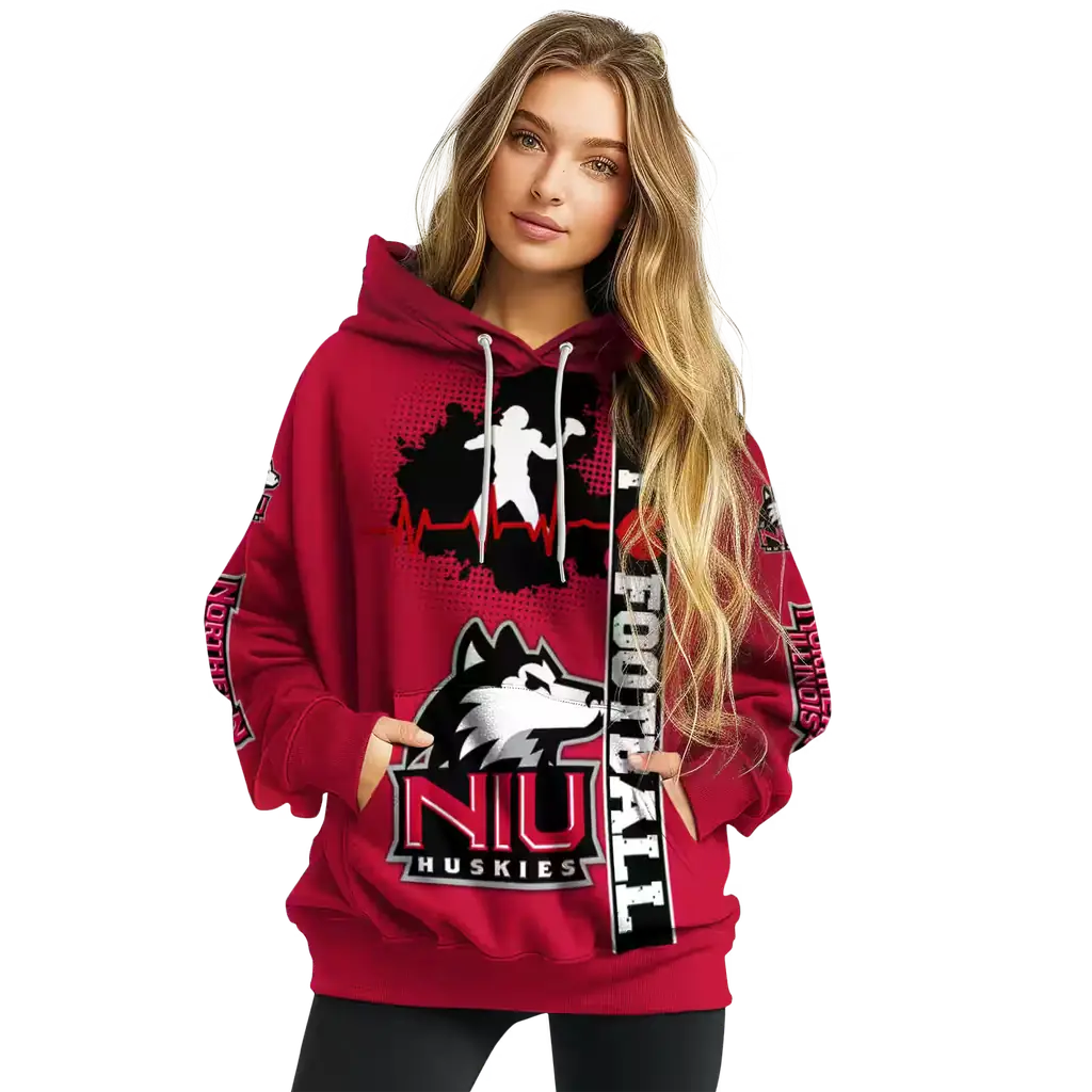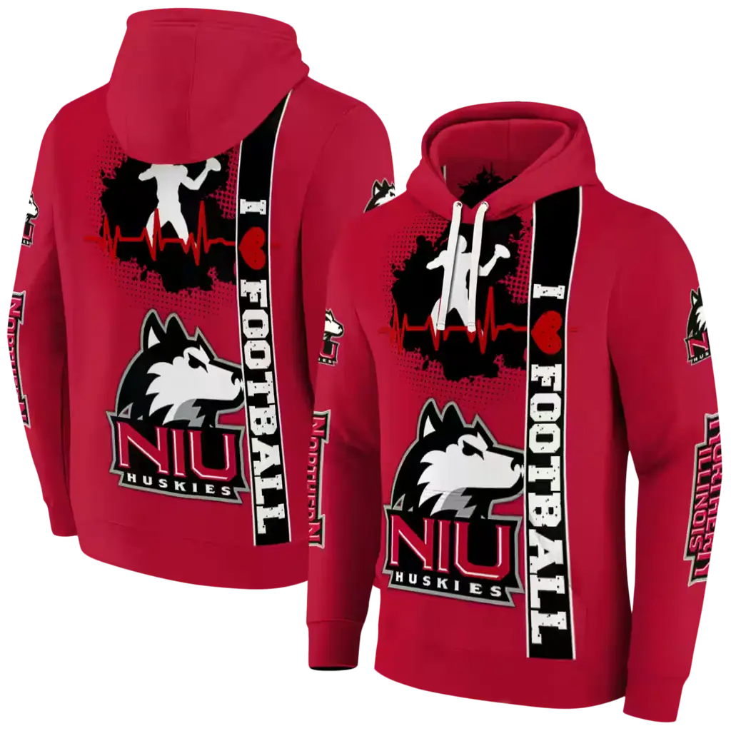 Northern Illinois Huskies Red Football Heartbeat Hoodie