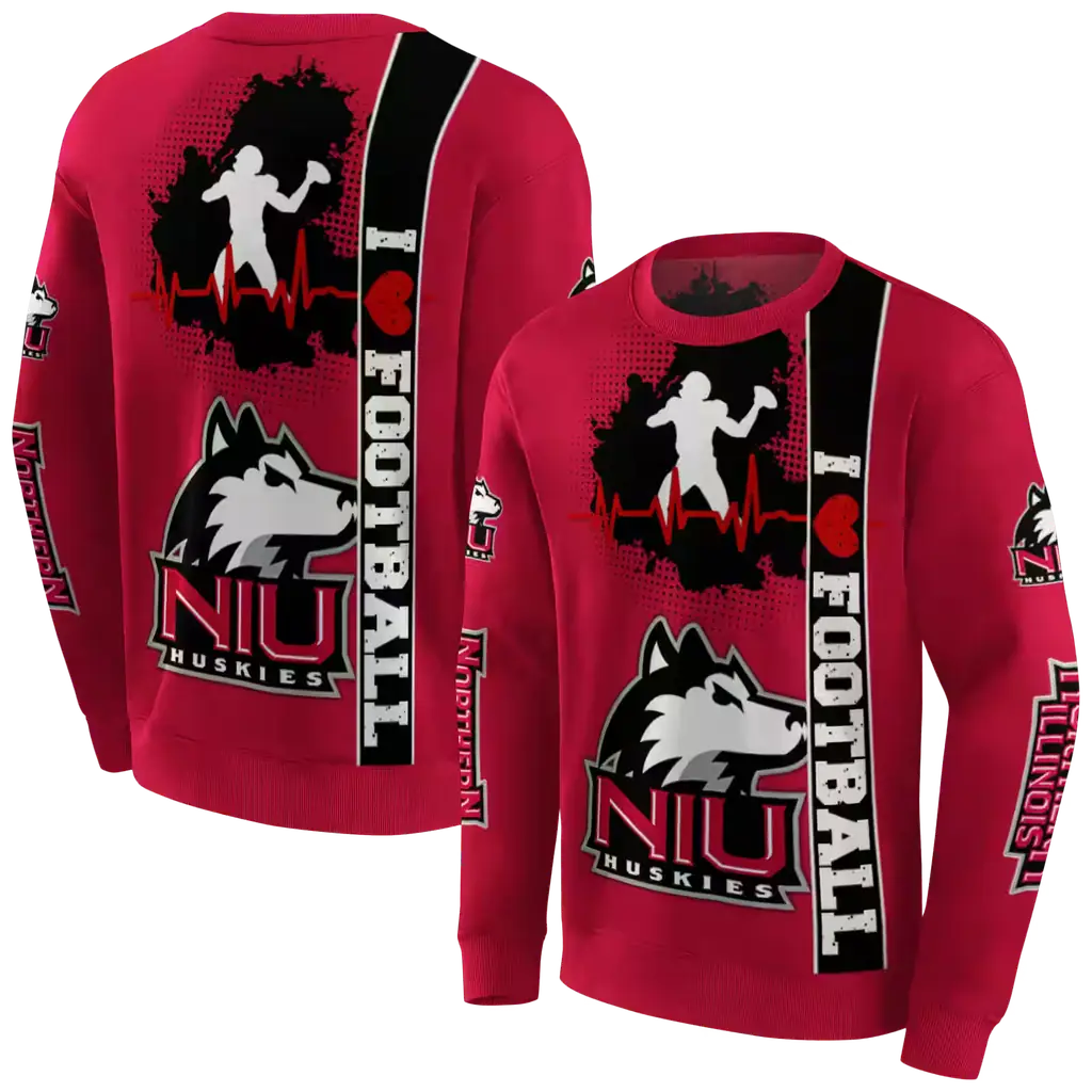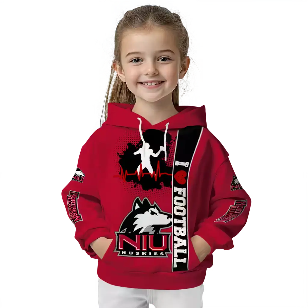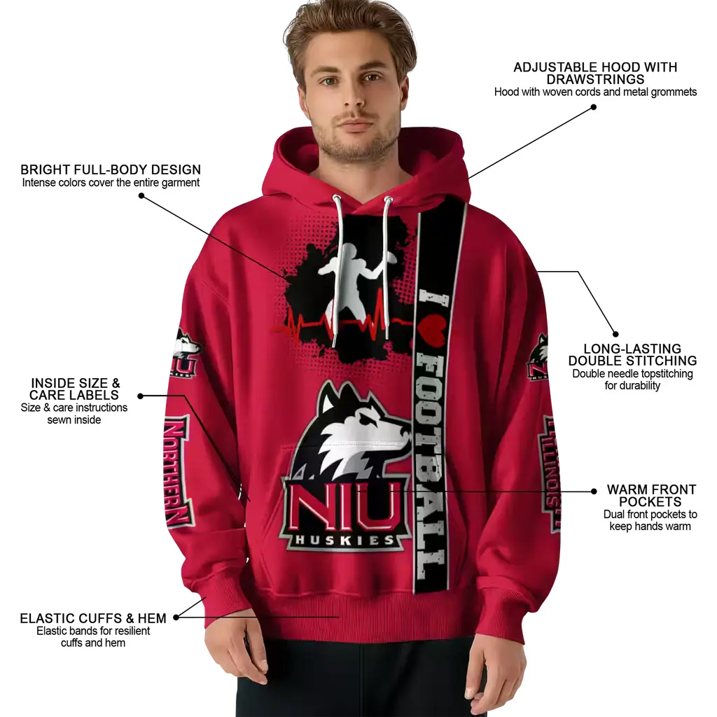 Northern Illinois Huskies Red Football Heartbeat Hoodie