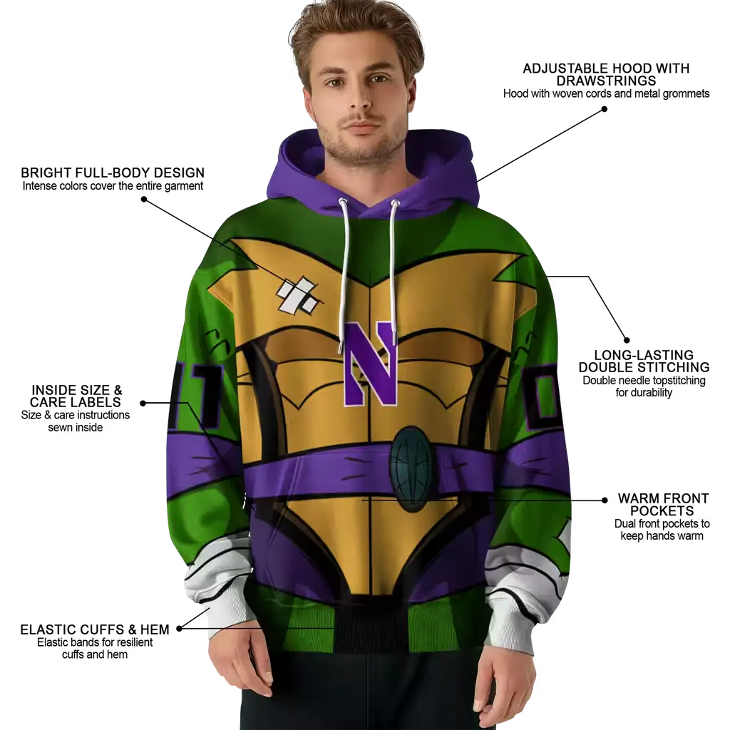 Northwestern Wildcats Personalized Purple Green Superhero Hoodie