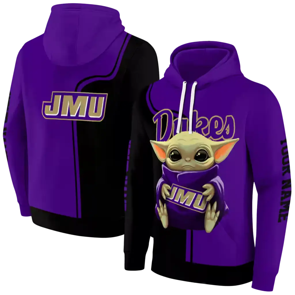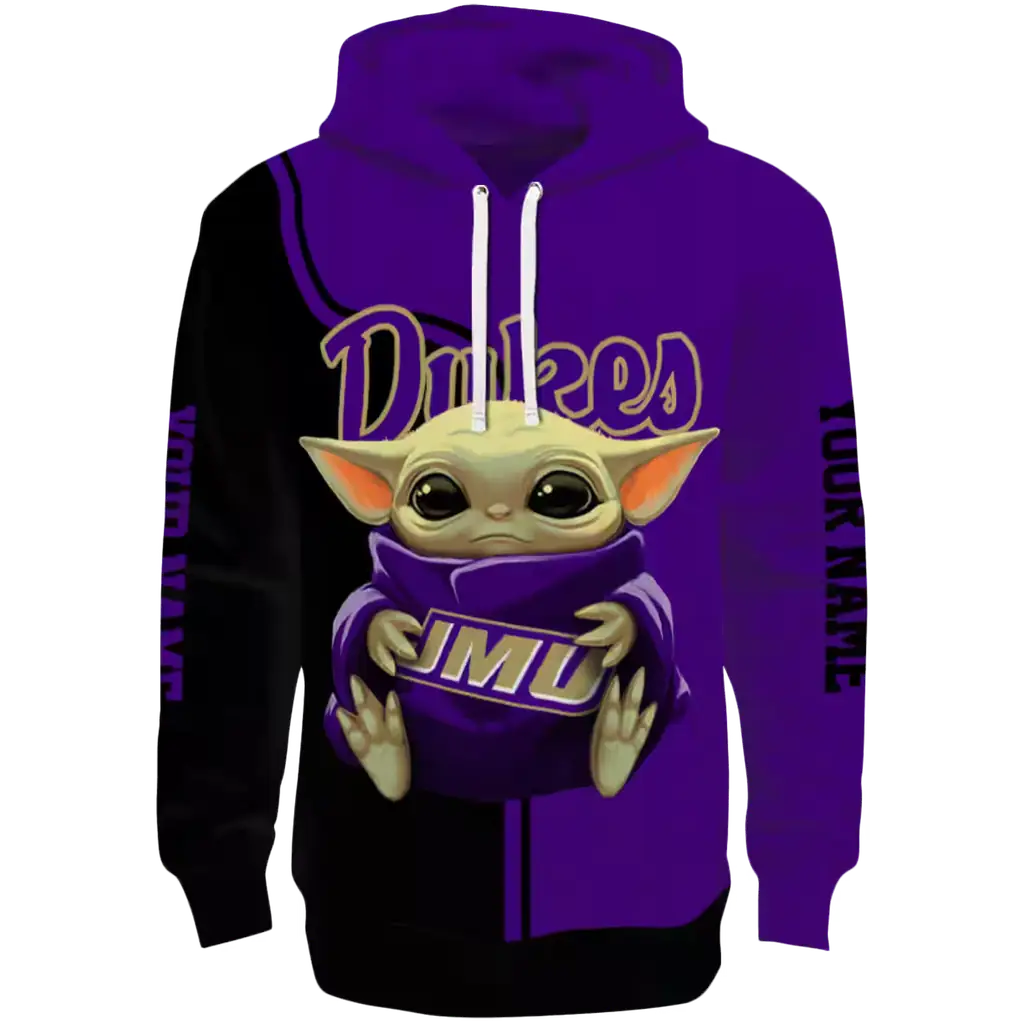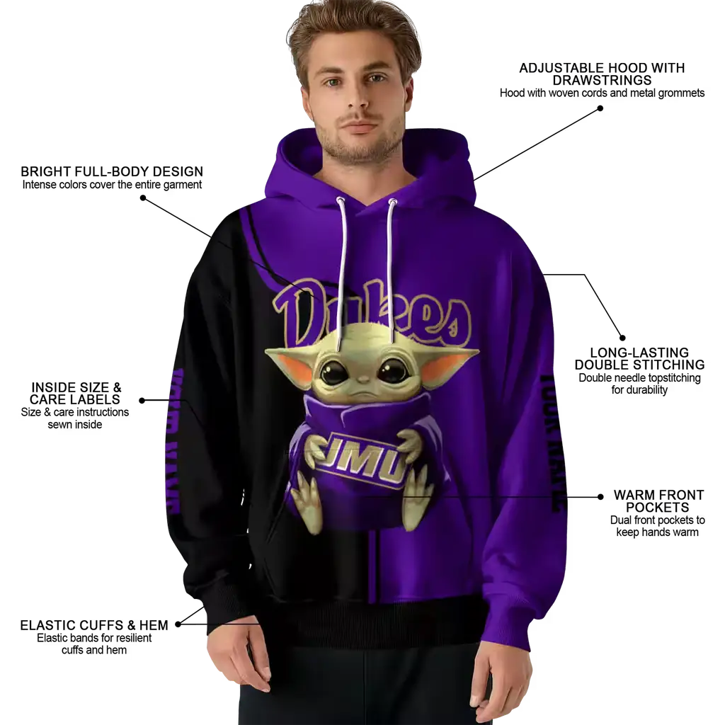 Personalized James Madison Dukes Baby Yoda Purple Black Hoodie