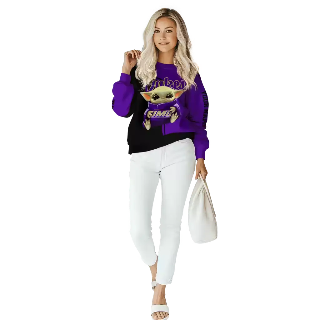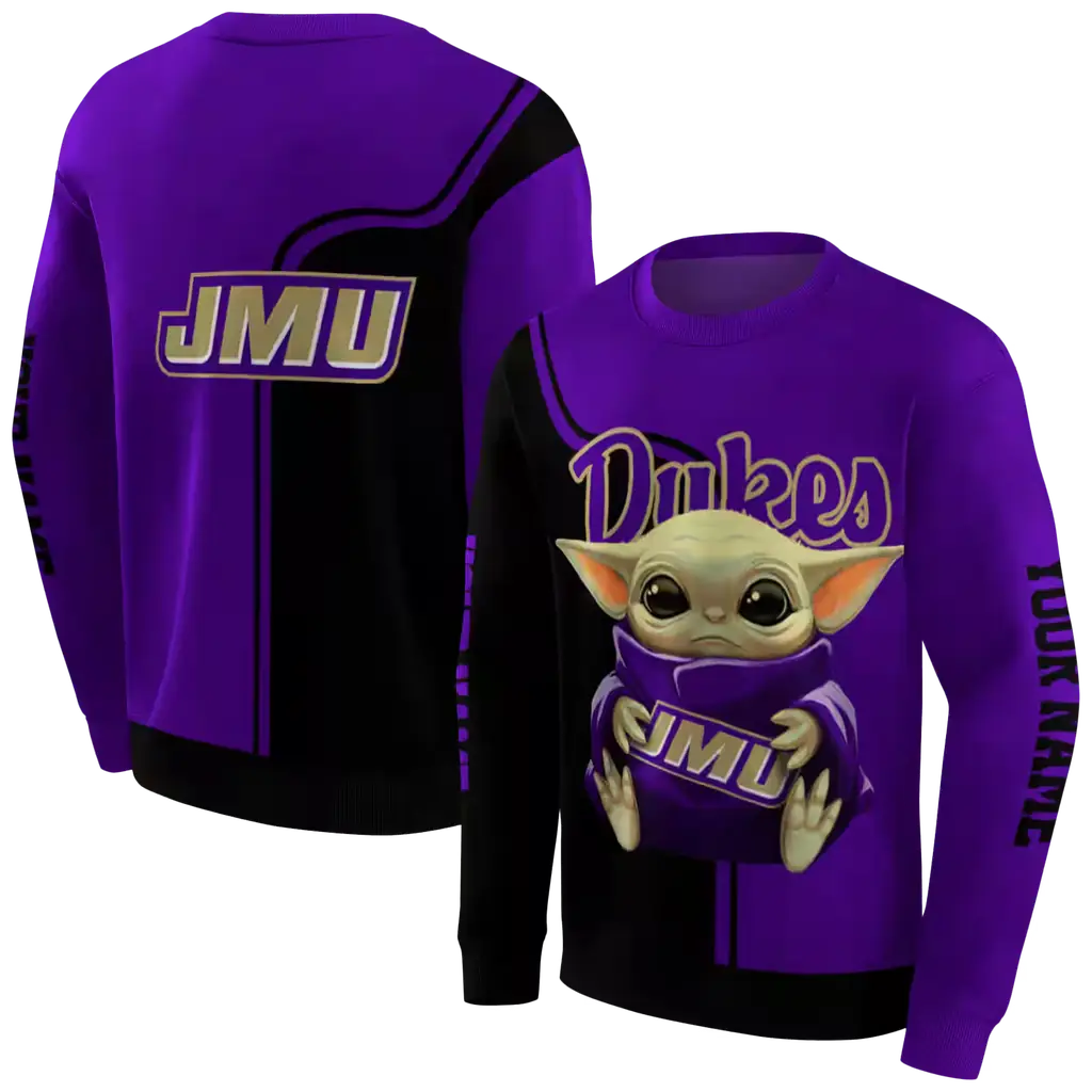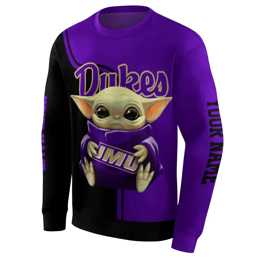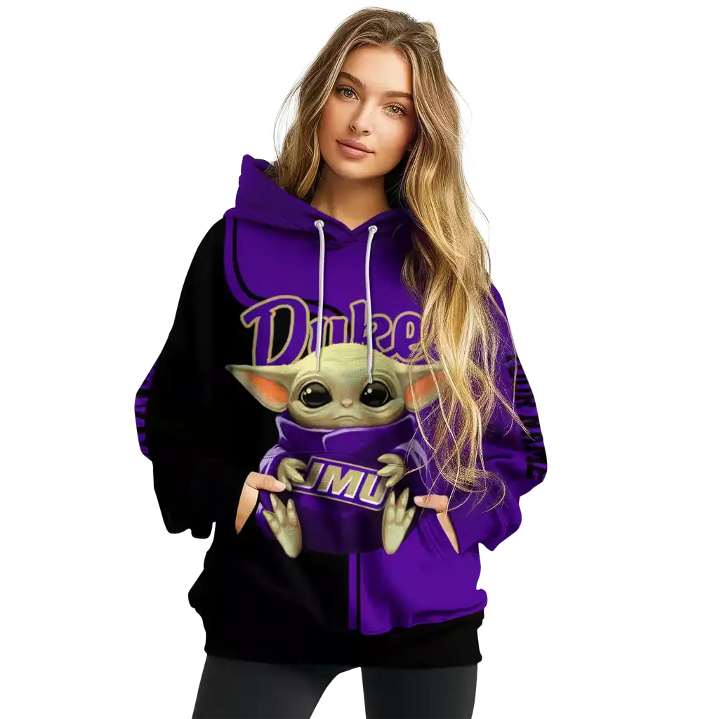 Personalized James Madison Dukes Baby Yoda Purple Black Hoodie