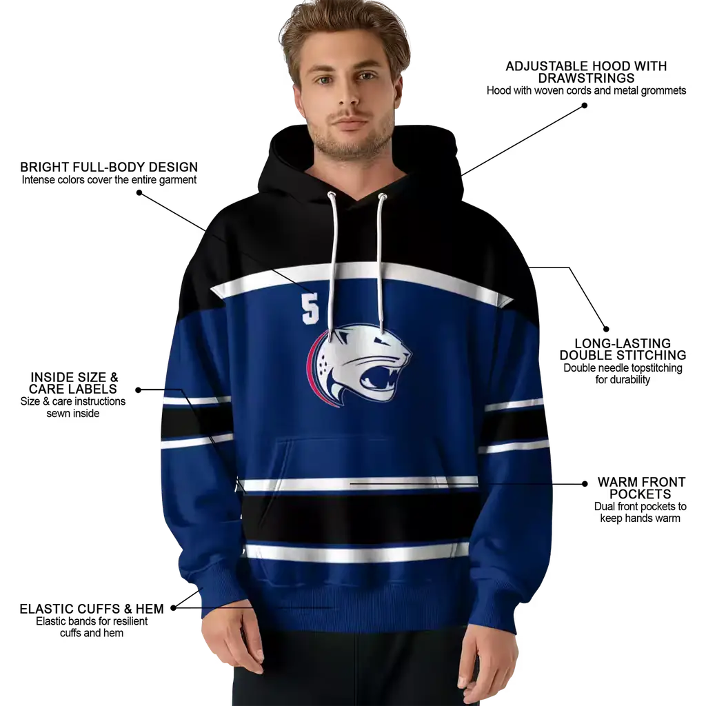 Showcase your pride with the South Alabama Jaguars Blue Striped Personalized Hoodie from our awesome South Alabama Jaguars Hoodies! Crafted for ultimate comfort from a blend of 95% polyester and 5% spandex, this hoodie features unique sport-inspired designs that capture your team’s spirit.
