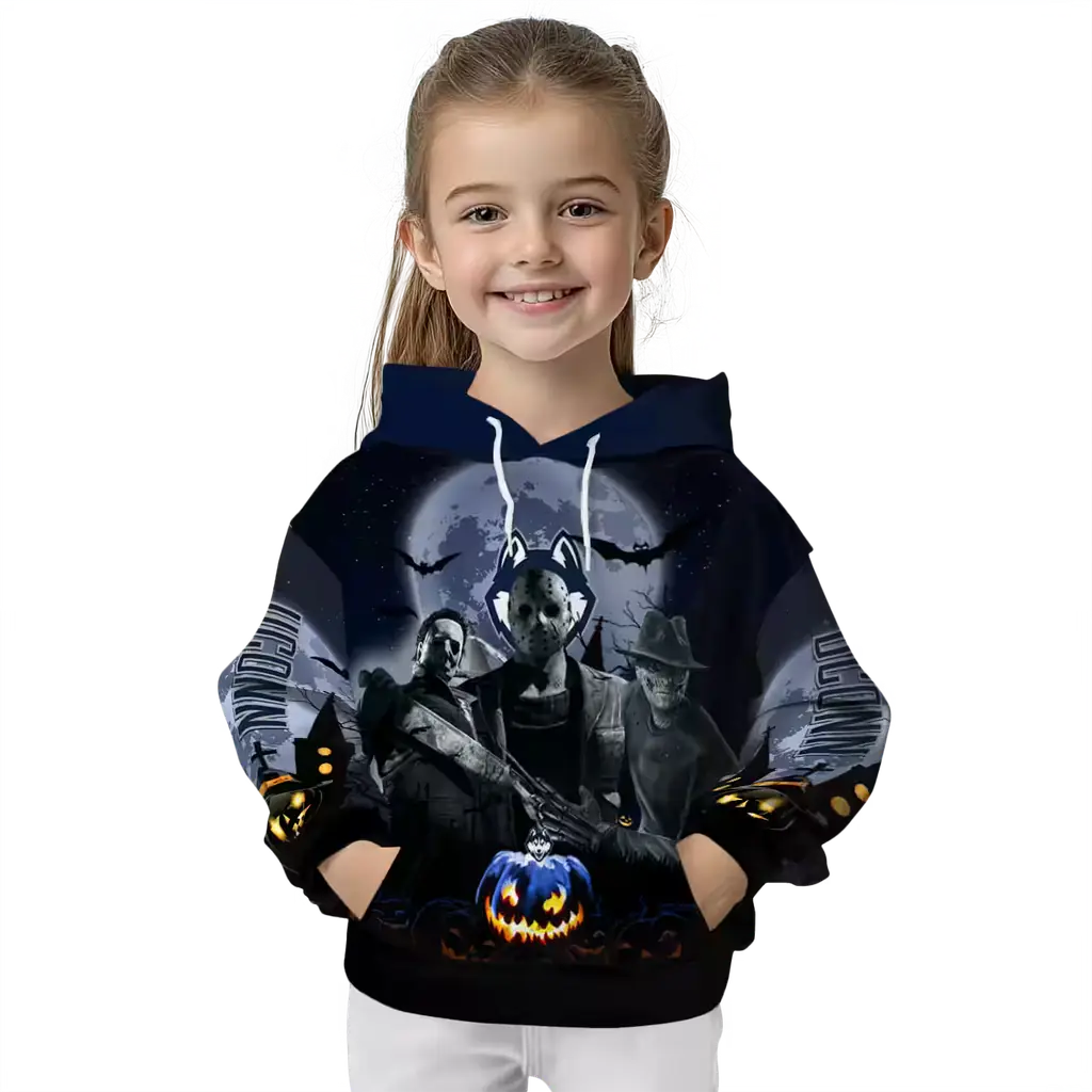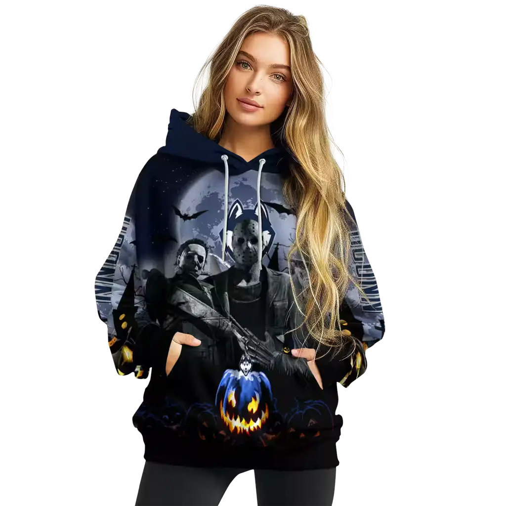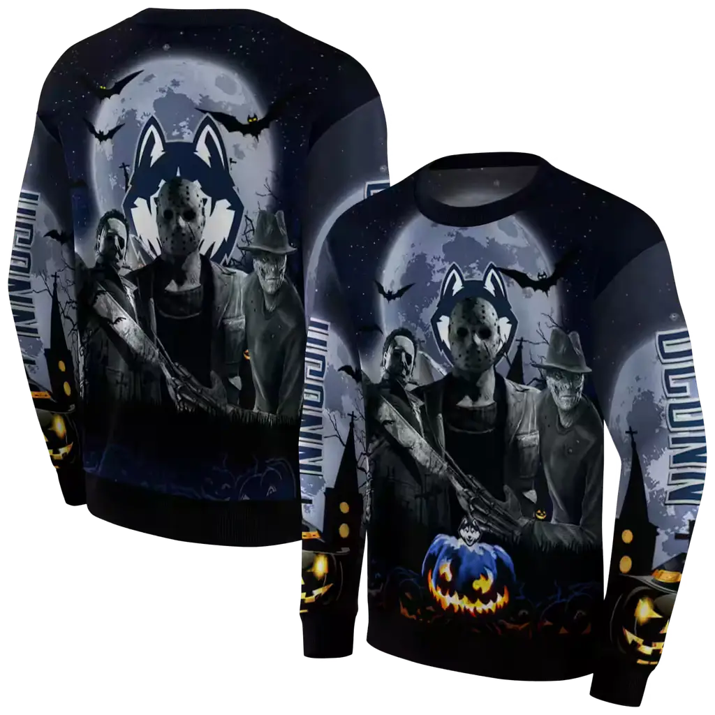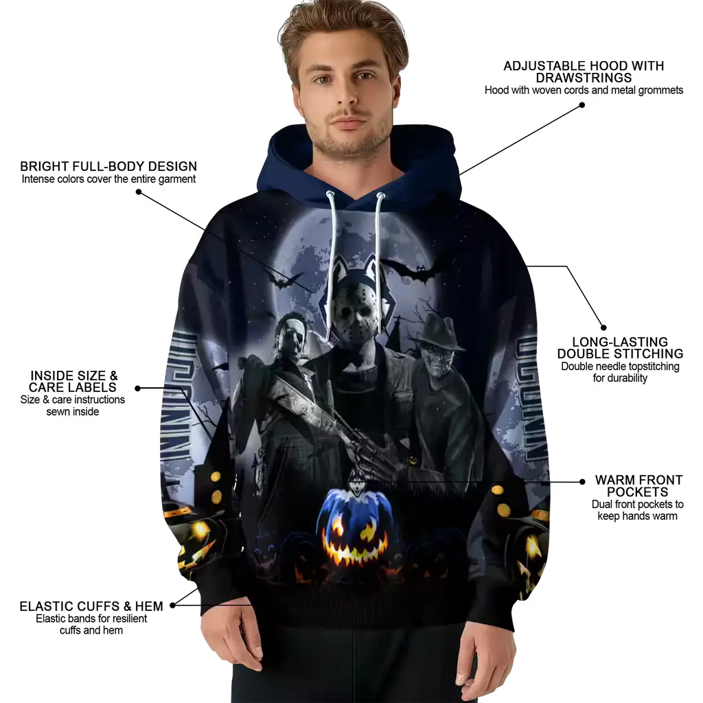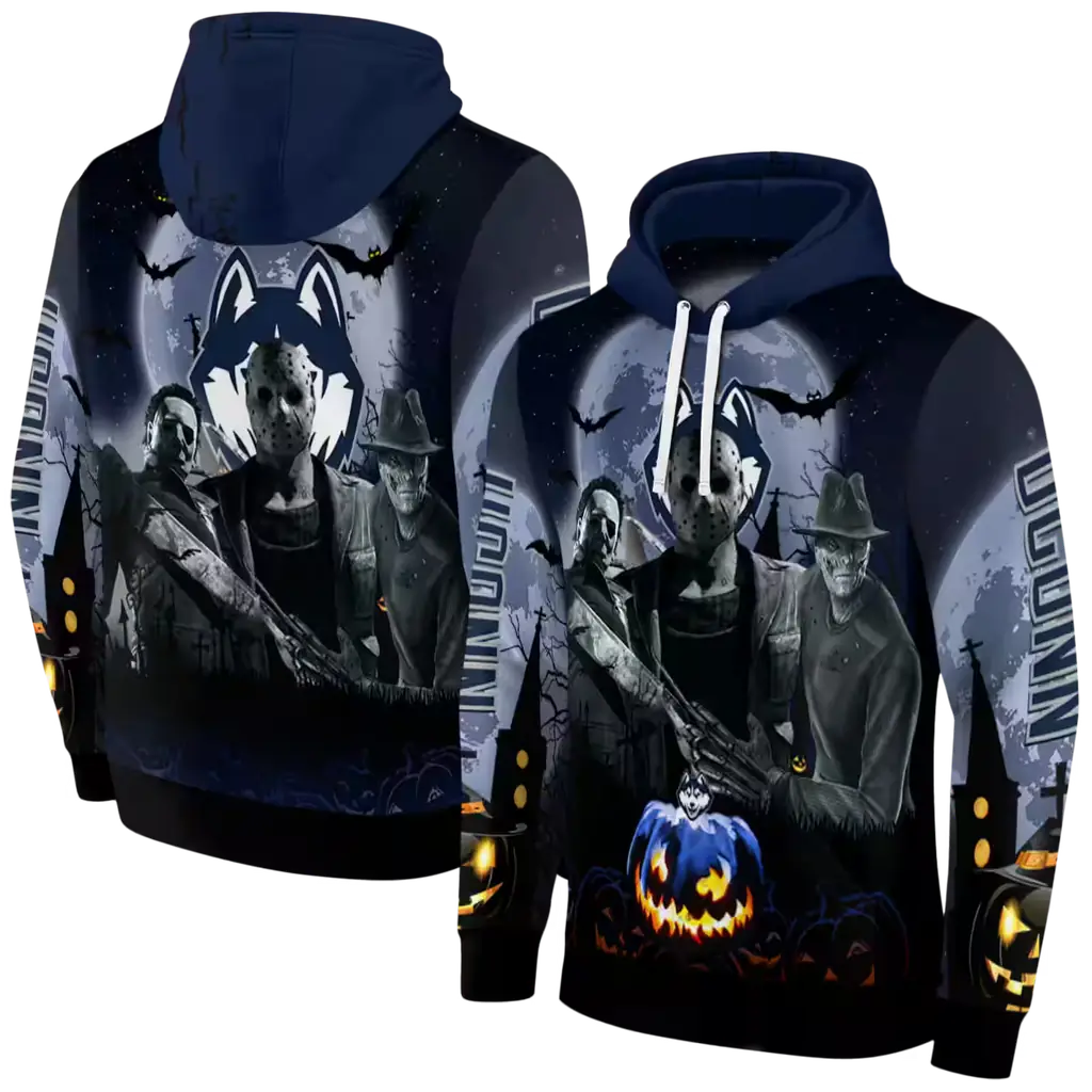 UConn Huskies Halloween Hoodie – Blue & Black College Sweatshirt