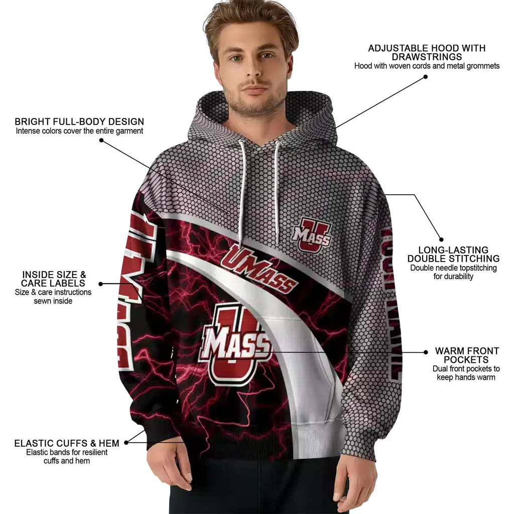 Delve into the details below and see why the UMass Minutemen Hex Mesh Red Black Gray Custom Hoodie from latest UMass Minutemen Hoodies is the definitive choice for displaying your team pride.