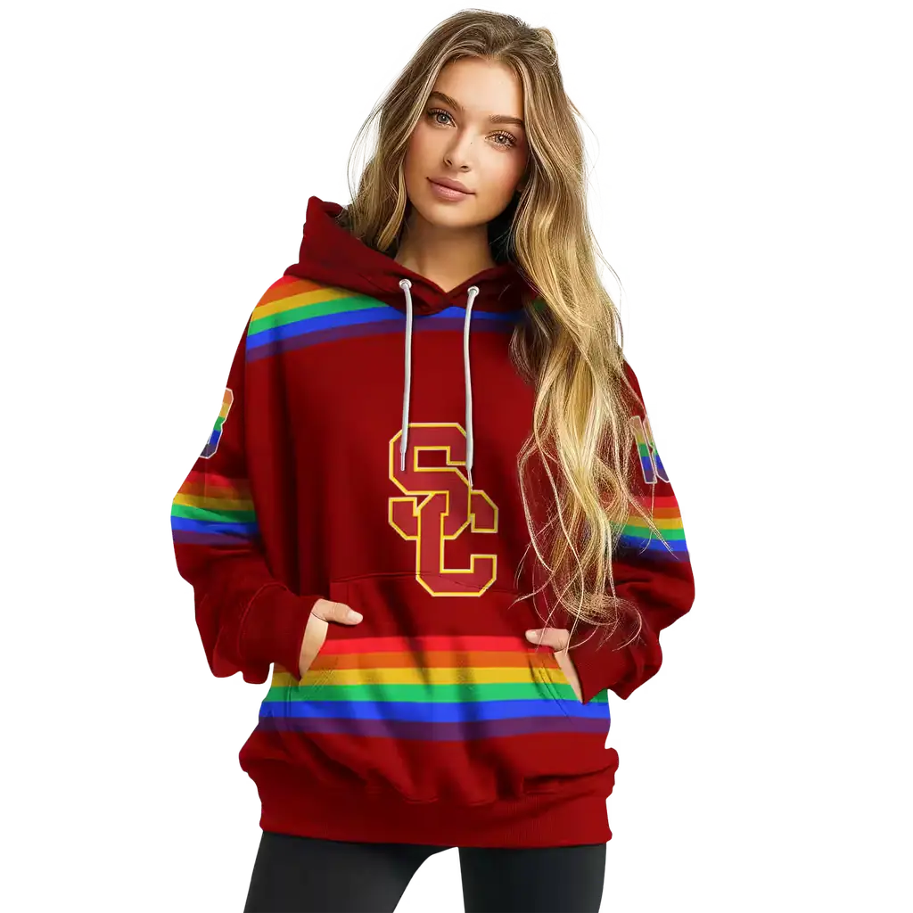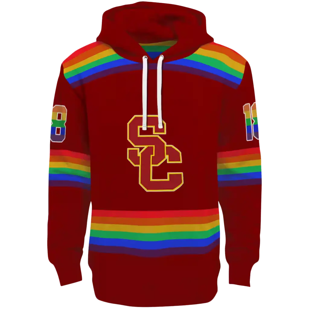 USC Trojans Red Hoodie with Custom Rainbow Stripes – Stylish Gear