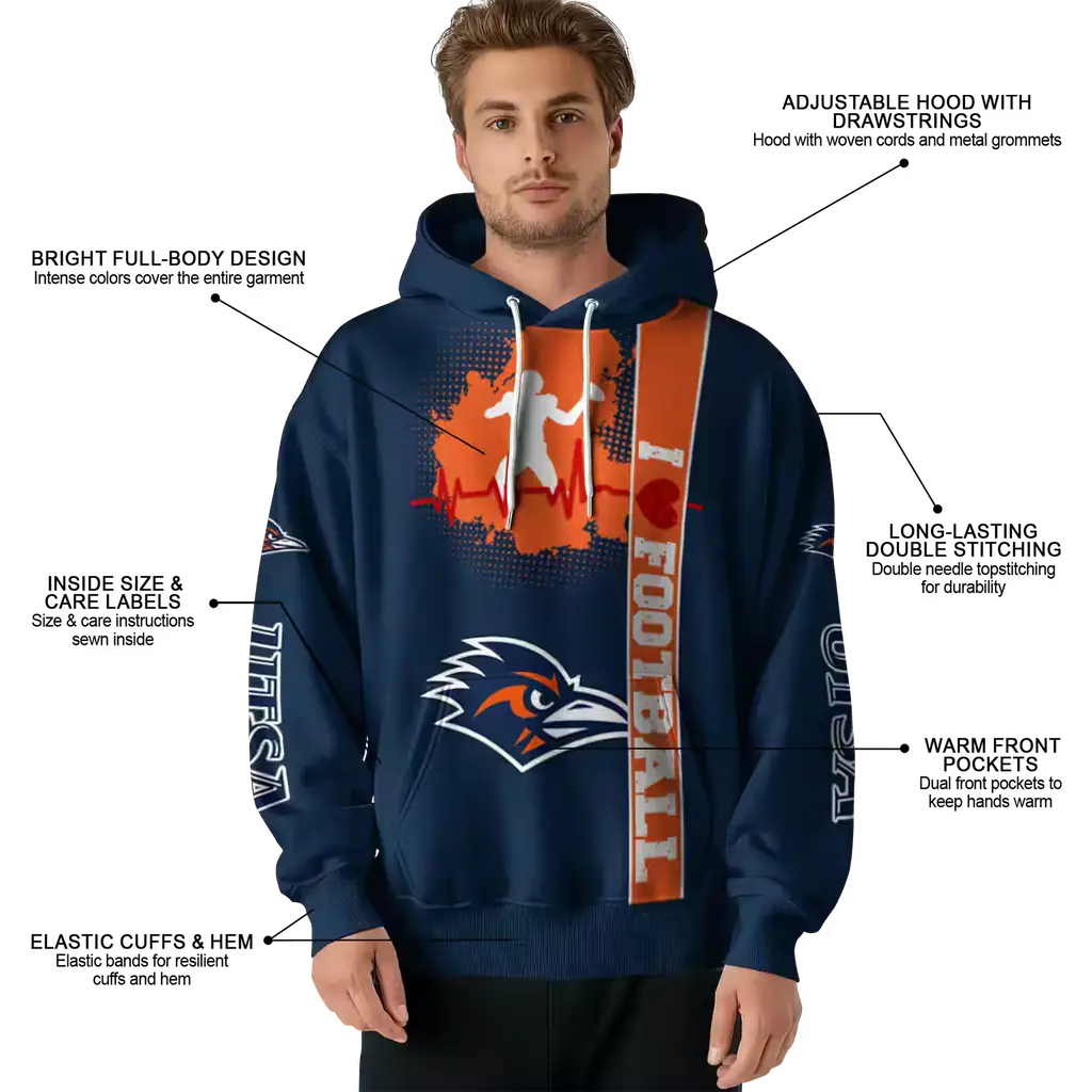 UTSA Roadrunners Orange Football Heartbeat Hoodie