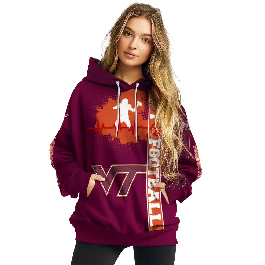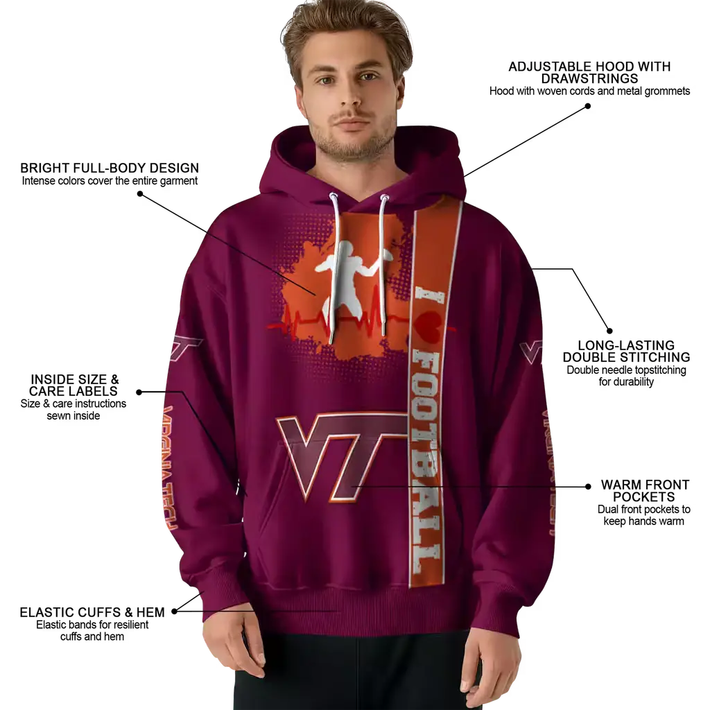Virginia Tech Hokies Maroon Football Heartbeat Hoodie
