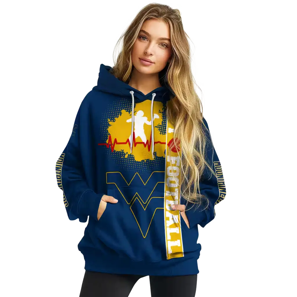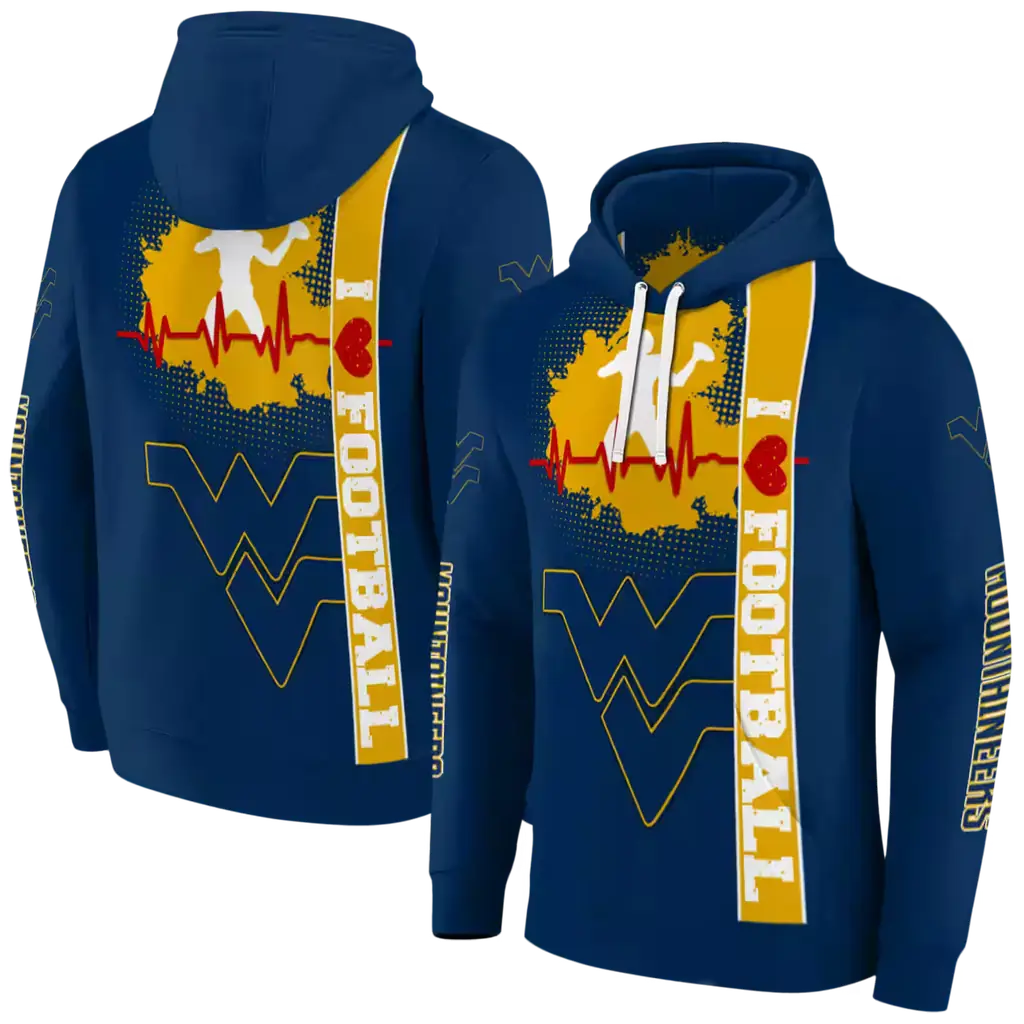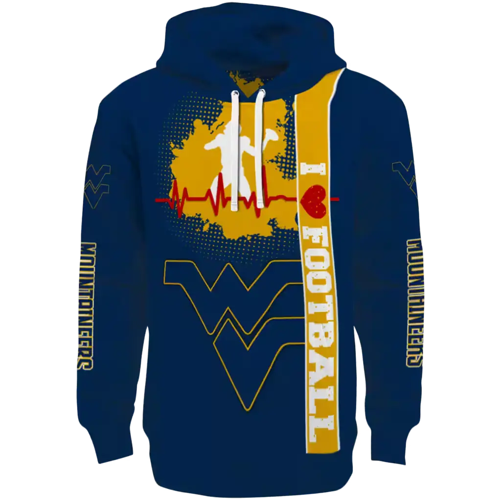 West Virginia Mountaineers Football Blue Heartbeat Hoodie