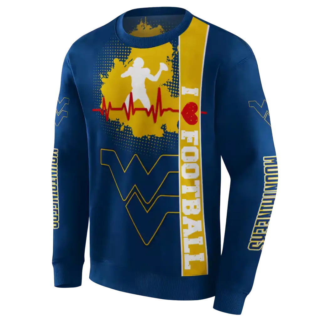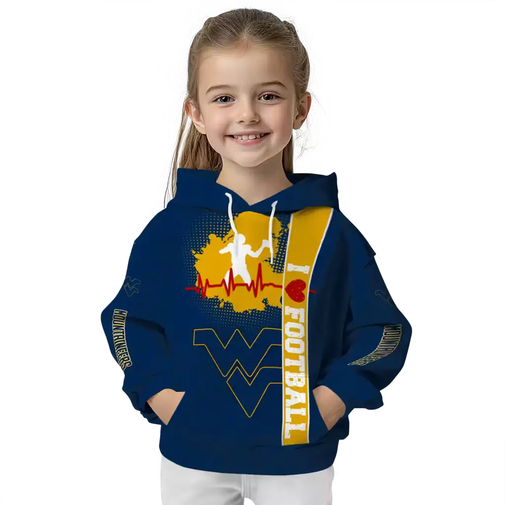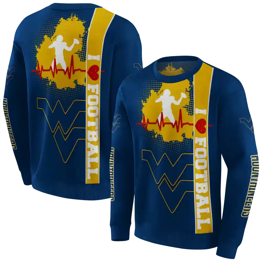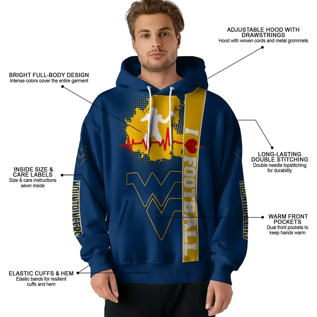 West Virginia Mountaineers Football Blue Heartbeat Hoodie