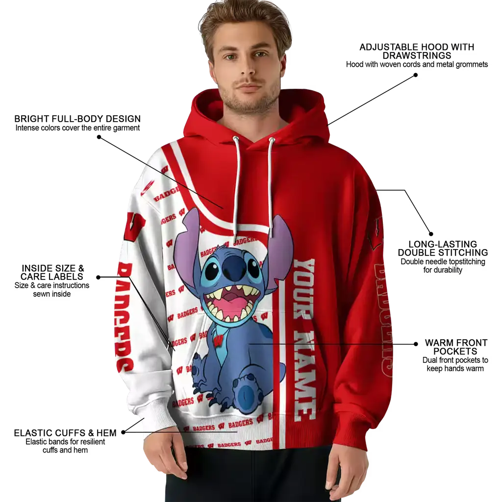 Wisconsin Badgers Custom Red Hoodie – Personalized Stitch Design