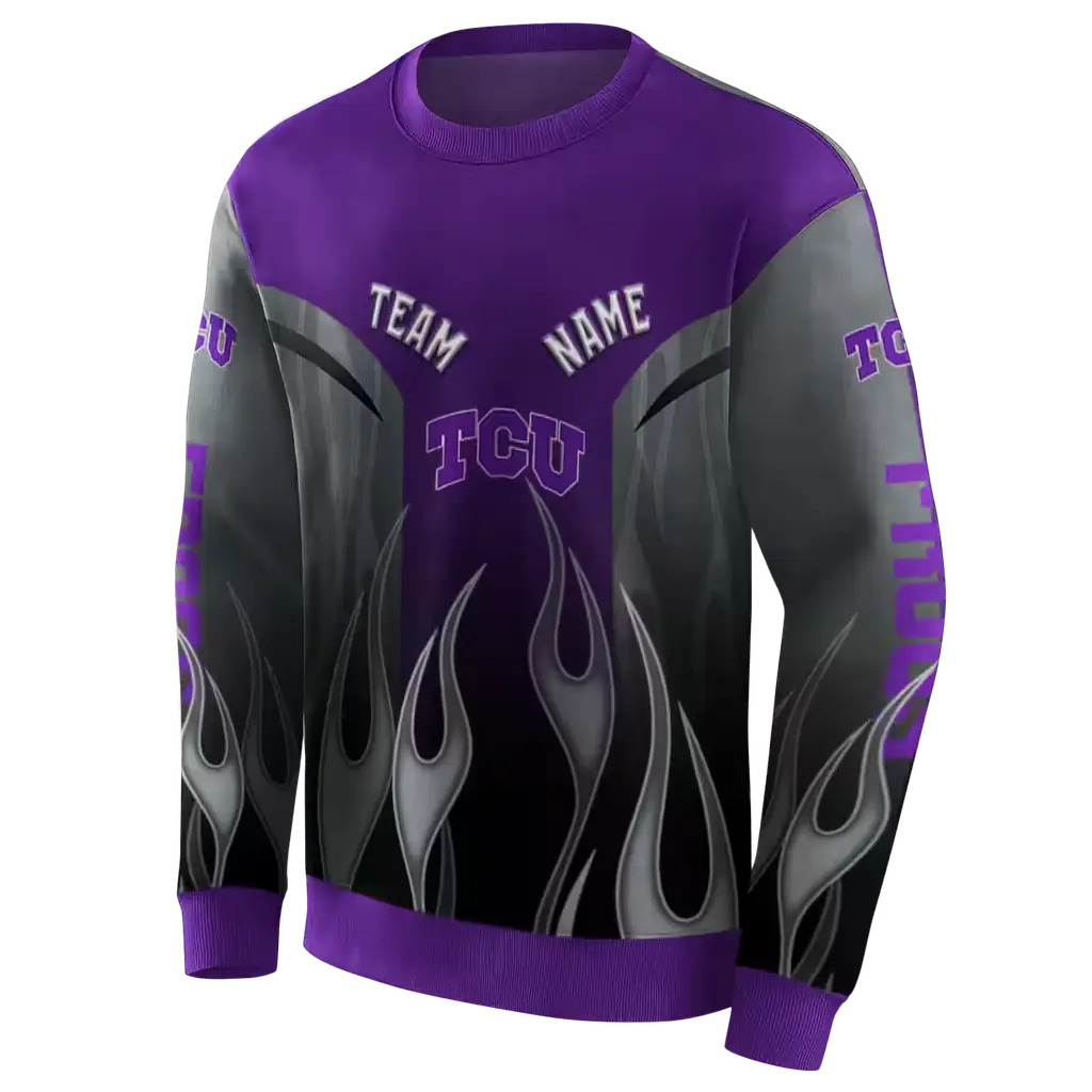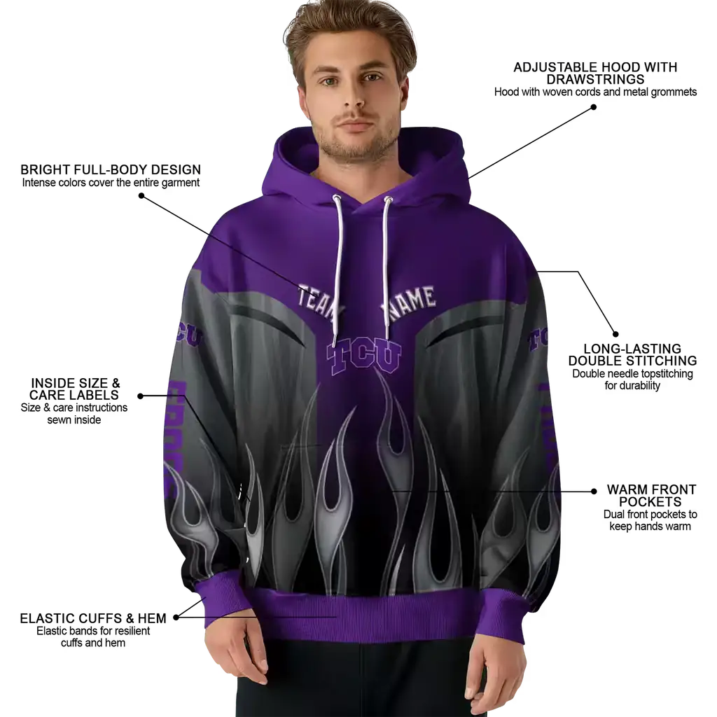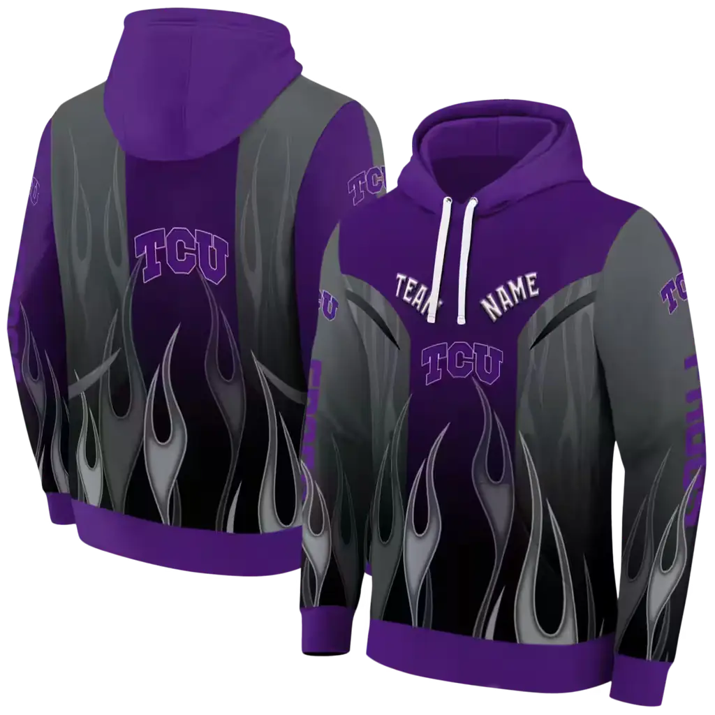 Delve into the details below and see why the Custom TCU Horned Frogs Purple Flame Hoodie – Personalized Design from latest TCU Horned Frogs Hoodies is the definitive choice for displaying your team pride.