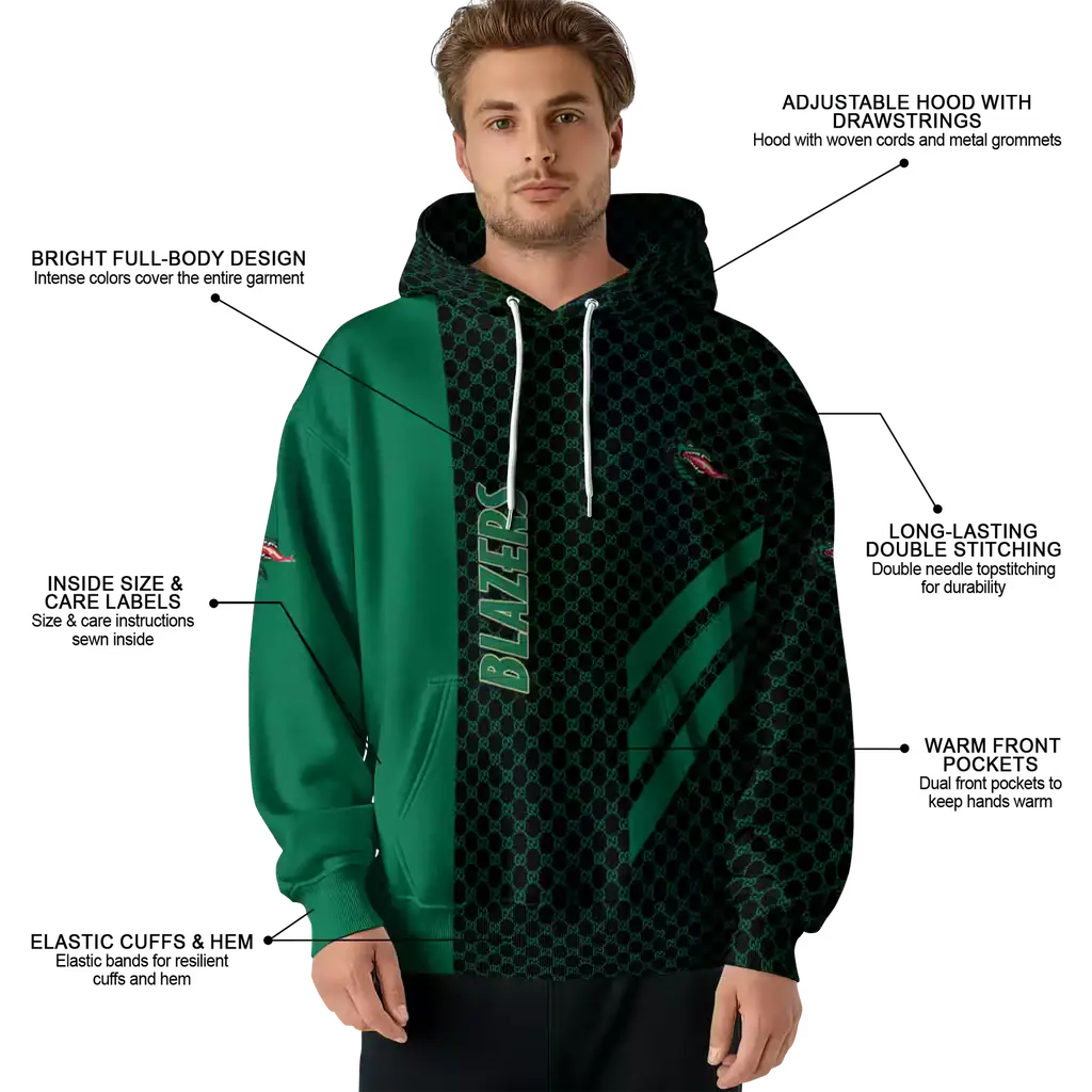UAB Blazers Green Hoodie with Monogram Pattern – Men’s & Women’s