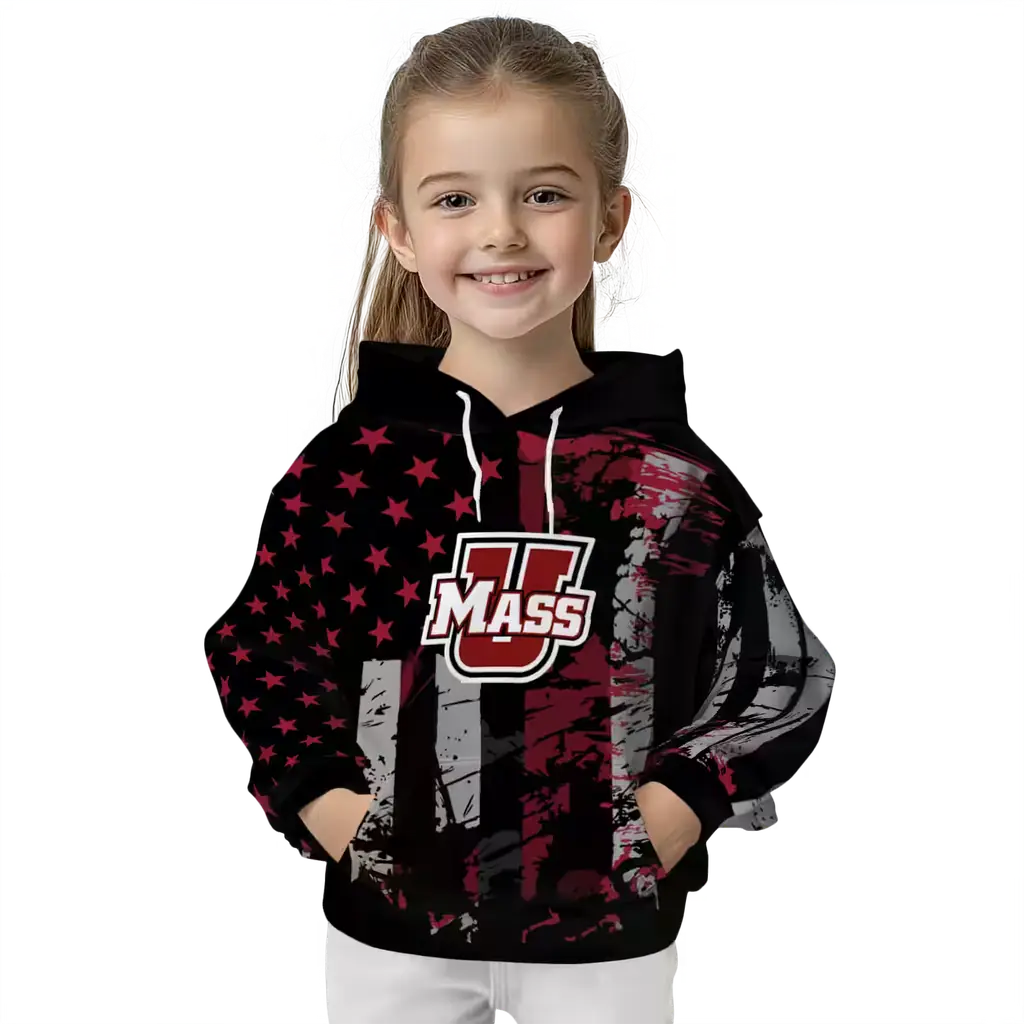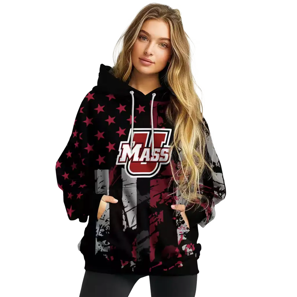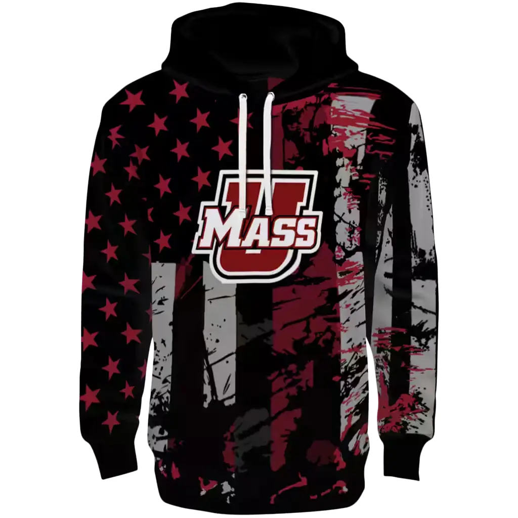 UMass Minutemen Distressed Red Black Hoodie – Custom Flag Design