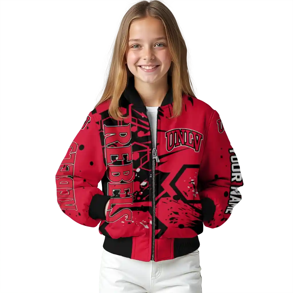 Discover the details that set our Customized UNLV Rebels Hexagon Cluster Red Black Bomber Jacket apart.